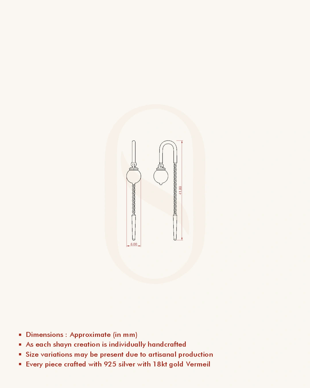 | Metal | 18KT Gold Vermeil (2.5 Microns Gold Layer on 925 Silver) |
