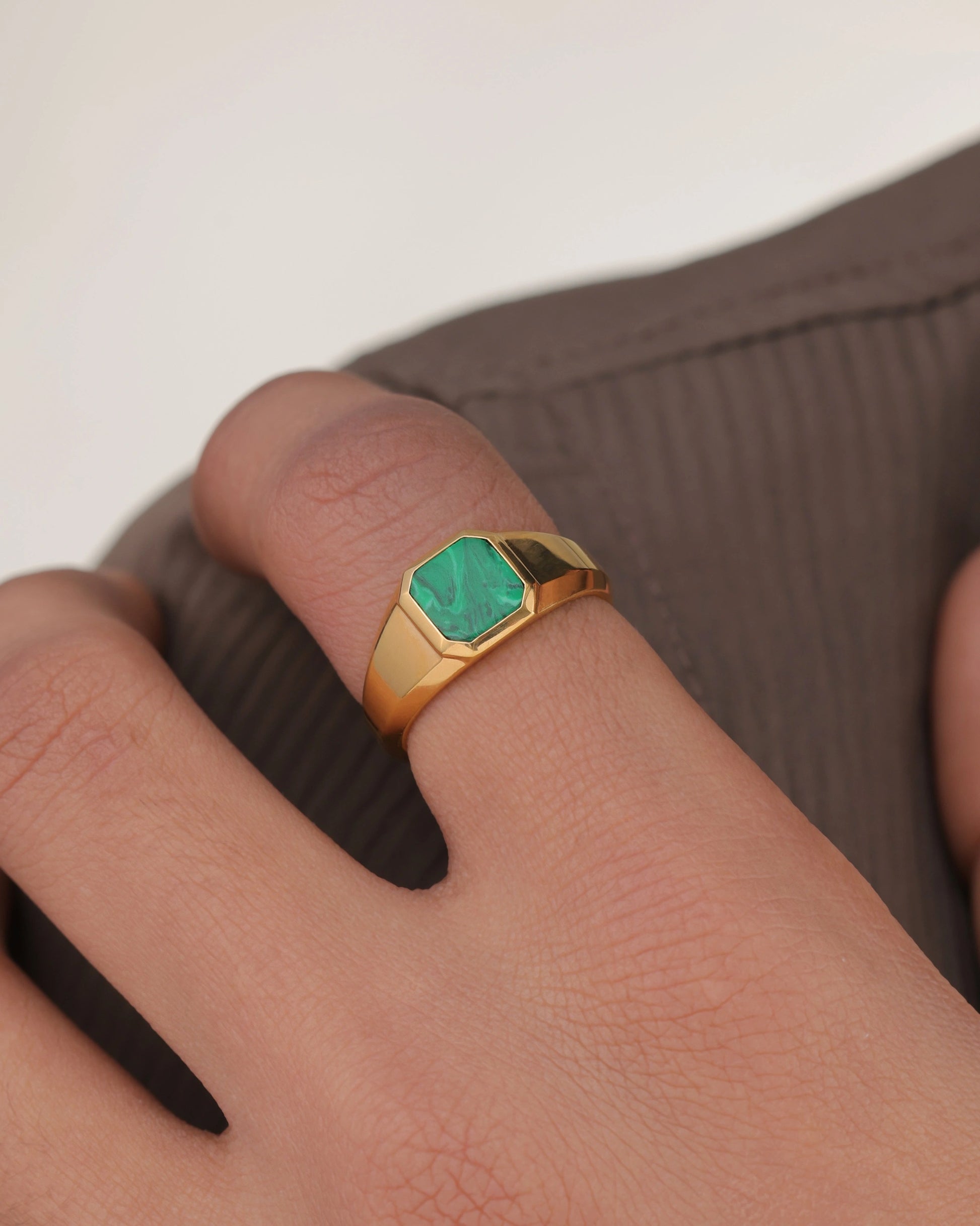 The inlay is precision-cut to fit the octagonal cavity with zero gaps, creating a seamless transition. A protective line around the stone prevents chipping at the edges of the gemstone.