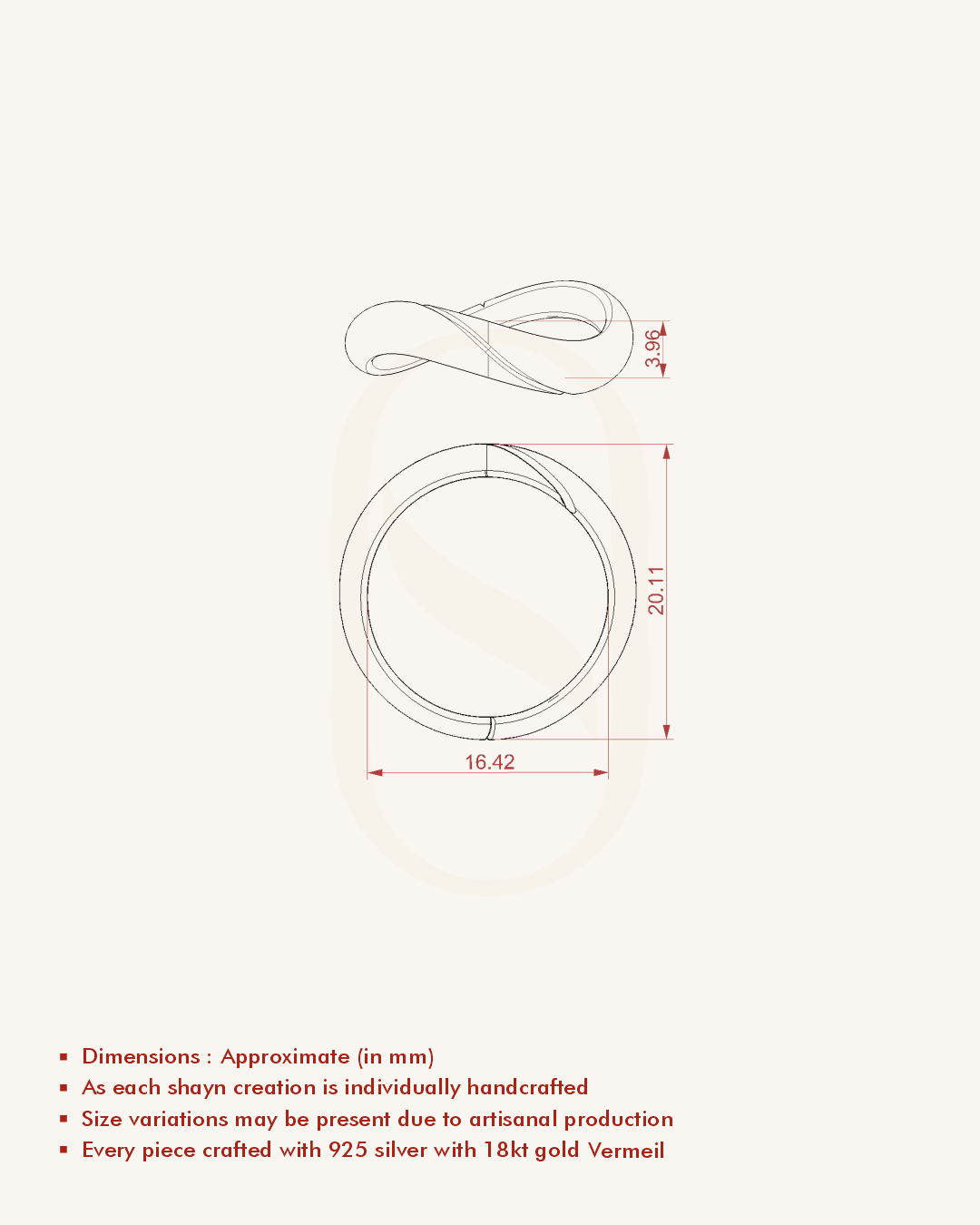 | Metal | 18KT Gold Vermeil (2.5 Microns Gold Layer on 925 Silver) |