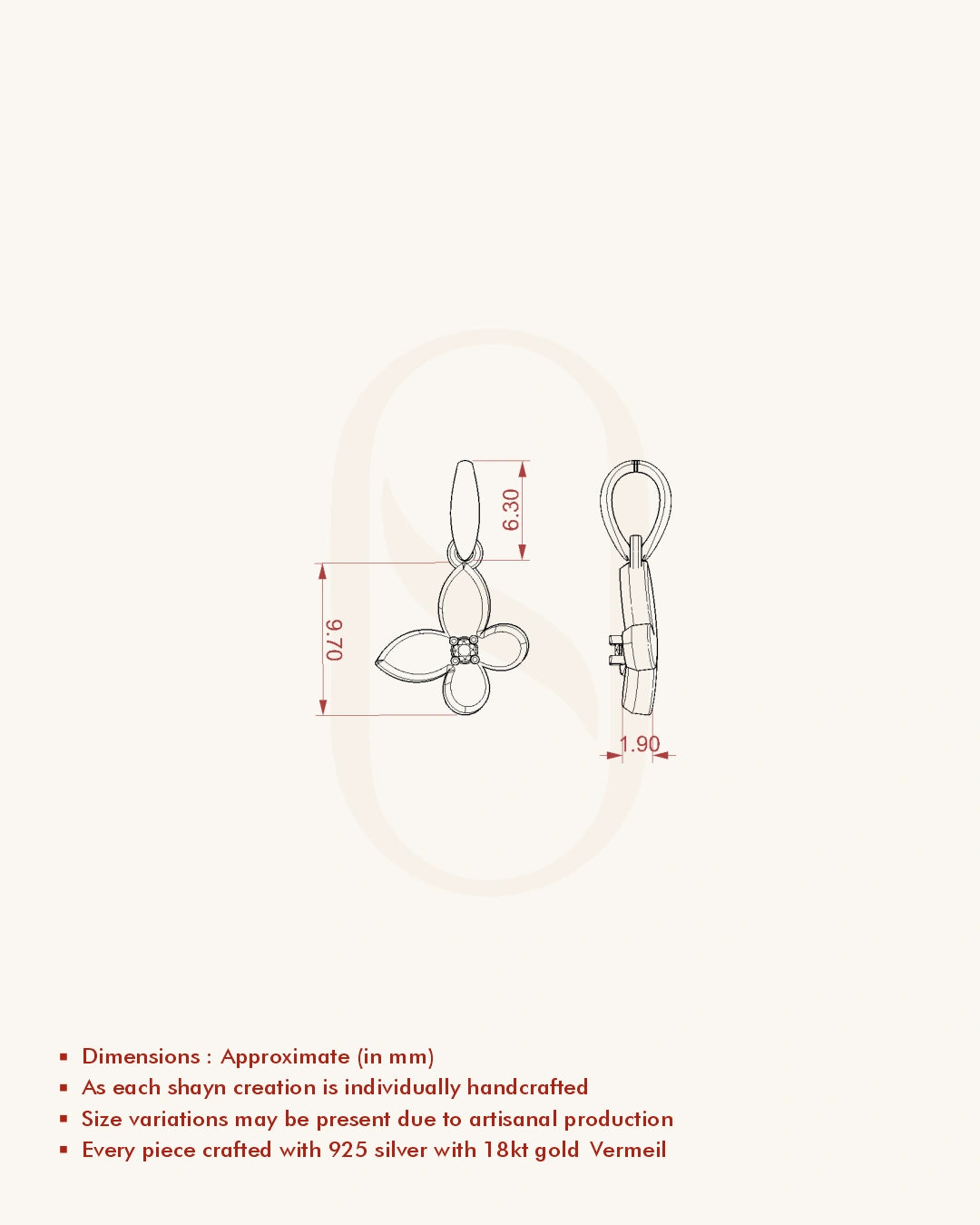 | Metal | 18KT Gold Vermeil (2.5 Microns Gold Layer on 925 Silver) |