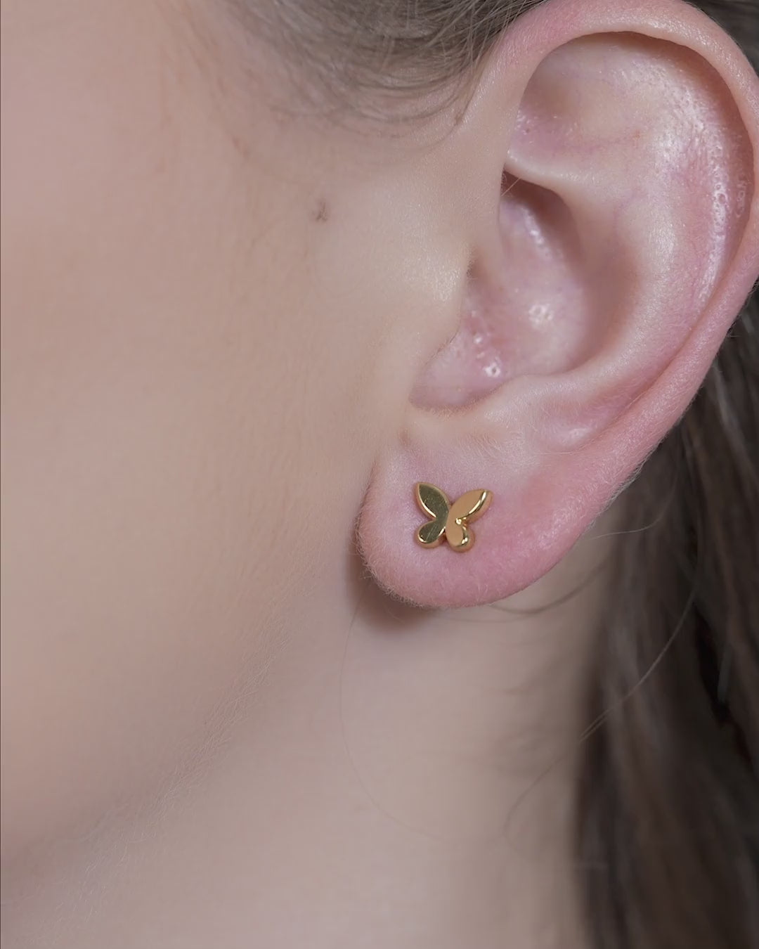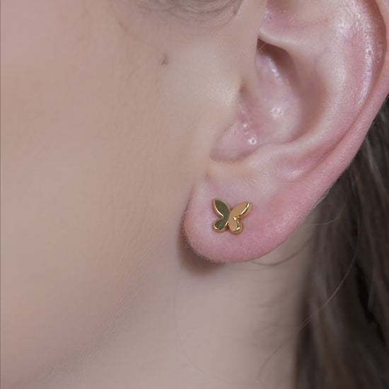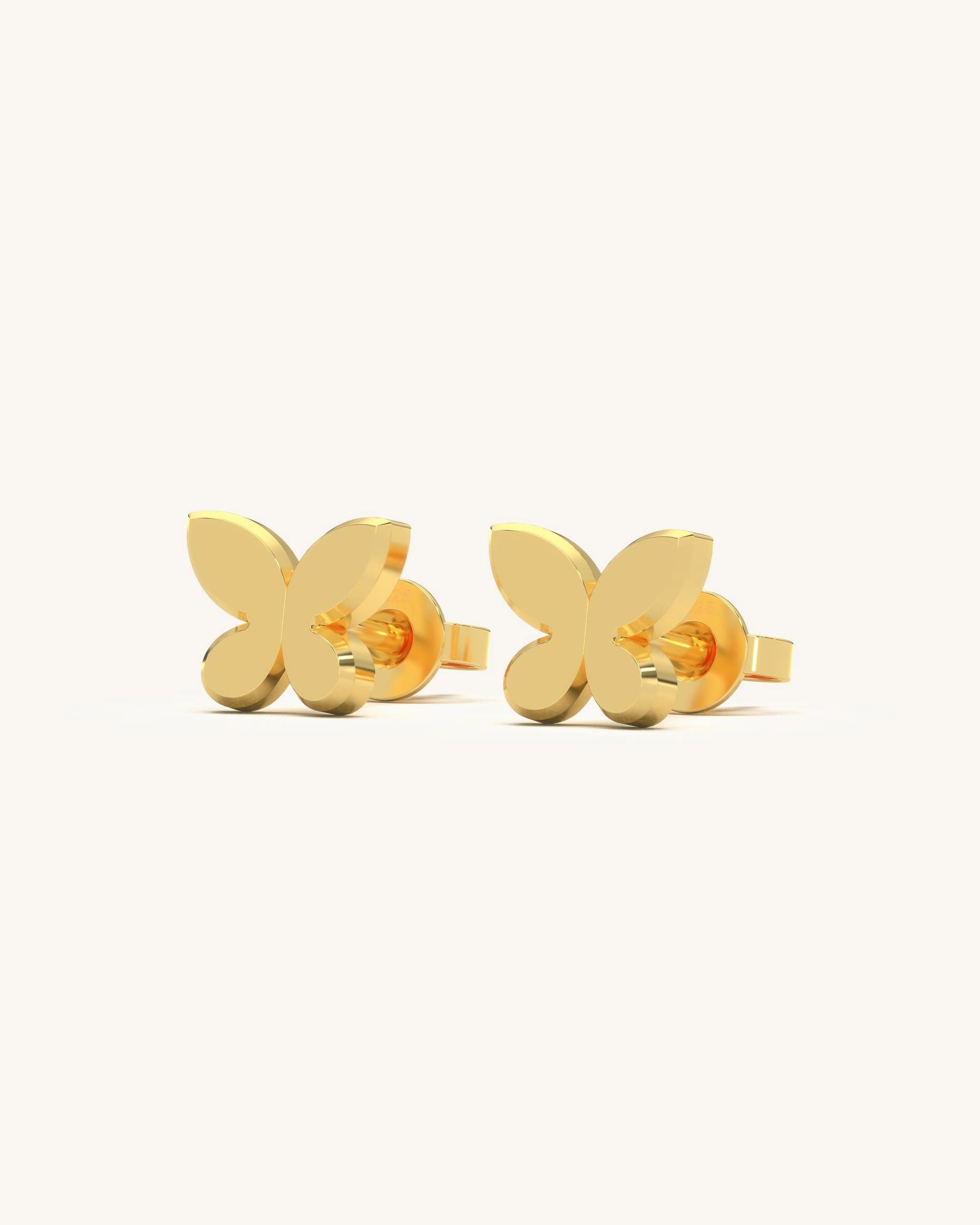 Minimal yet full of charm, these butterfly-shaped stud earrings feature a smooth, highly polished gold surface for a sleek and modern finish.
