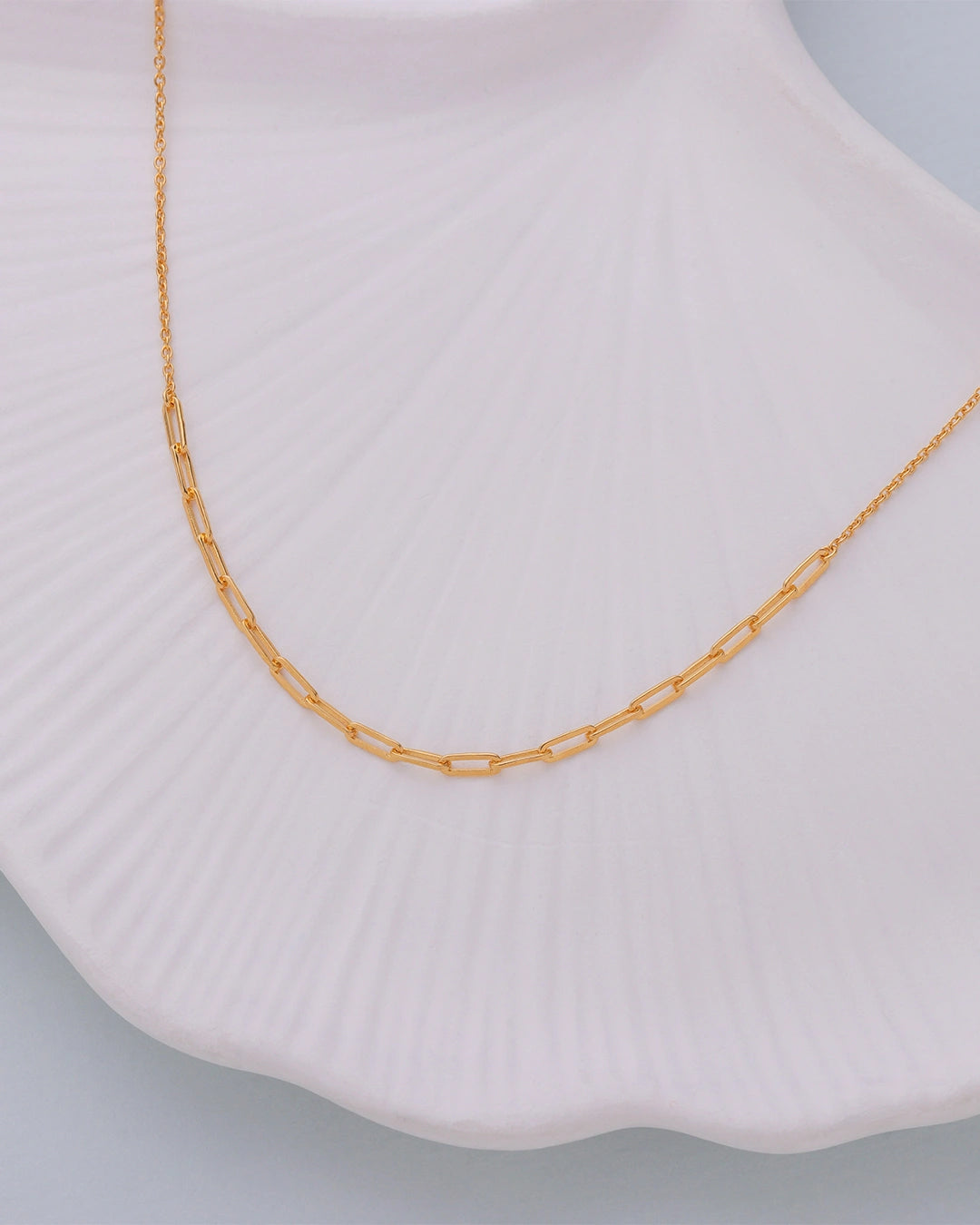 Chunky gold necklace with large rectangular links for a bold, statement finish.