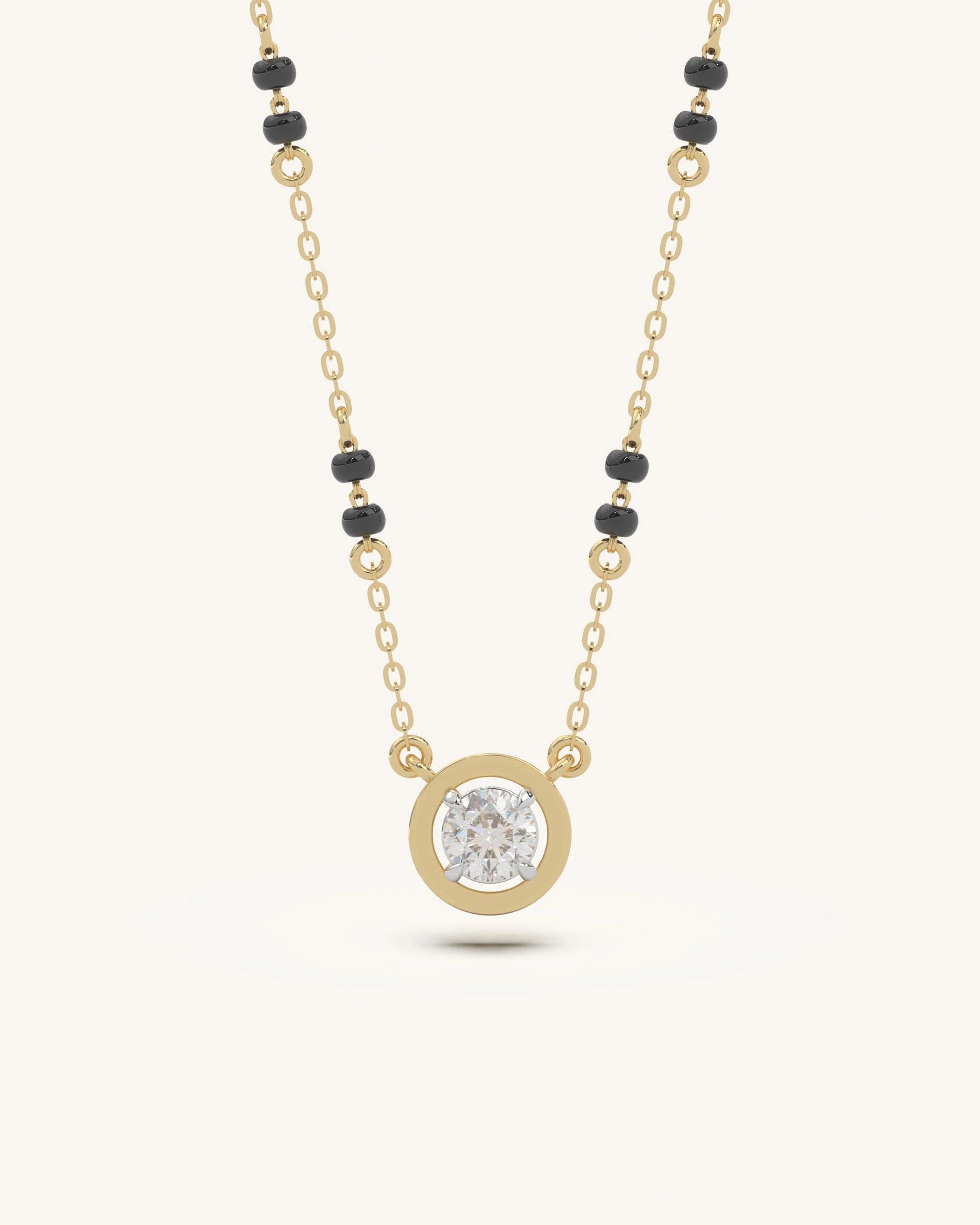 Simplicity at its finest. A solitaire round Moissanite is set within a thick, flat gold circle. This "bullseye" design offers a bold, architectural look that feels substantial yet understated enough for everyday office wear.