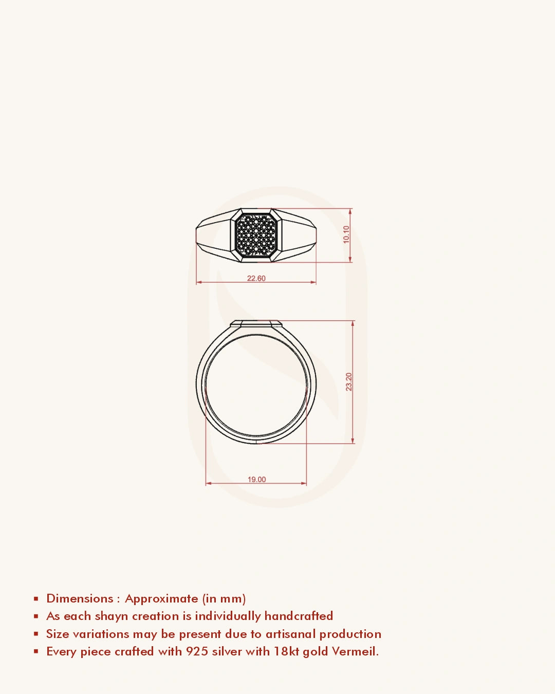 | Metal | 18KT Gold Vermeil (2.5 Microns Gold Layer on 925 Silver) |