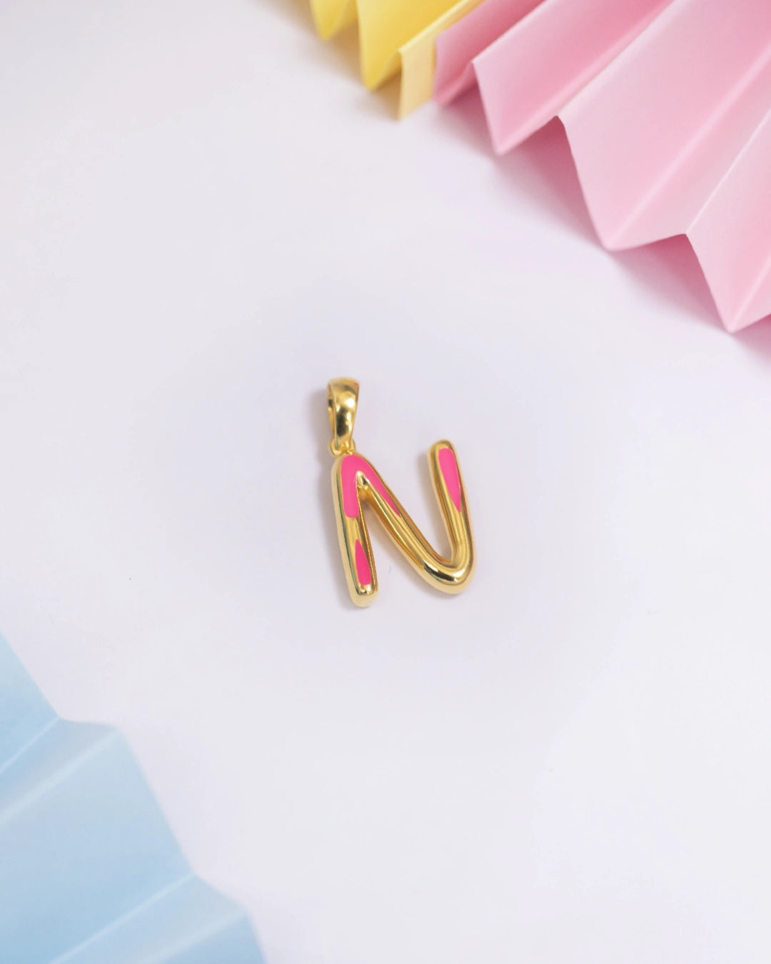 Crafted in sterling 925 silver. Pink enamel pops against a gold finish, giving a playful yet elegant edge. Great for gifting.