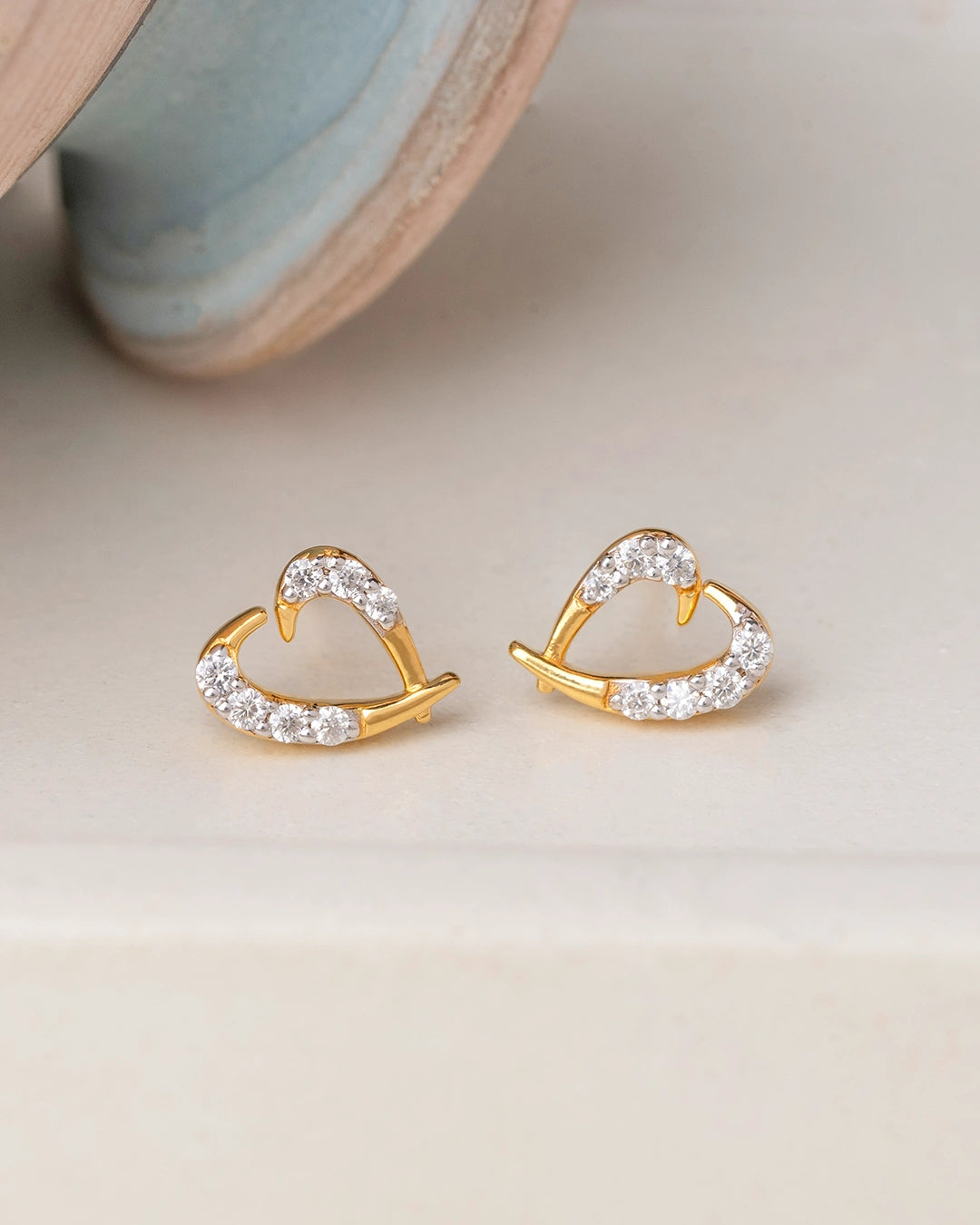 Designed in clean silver, these open heart studs showcase curved forms with sparkling moissanite detail on both sides. The balanced cut makes them ideal for gifting or styling.