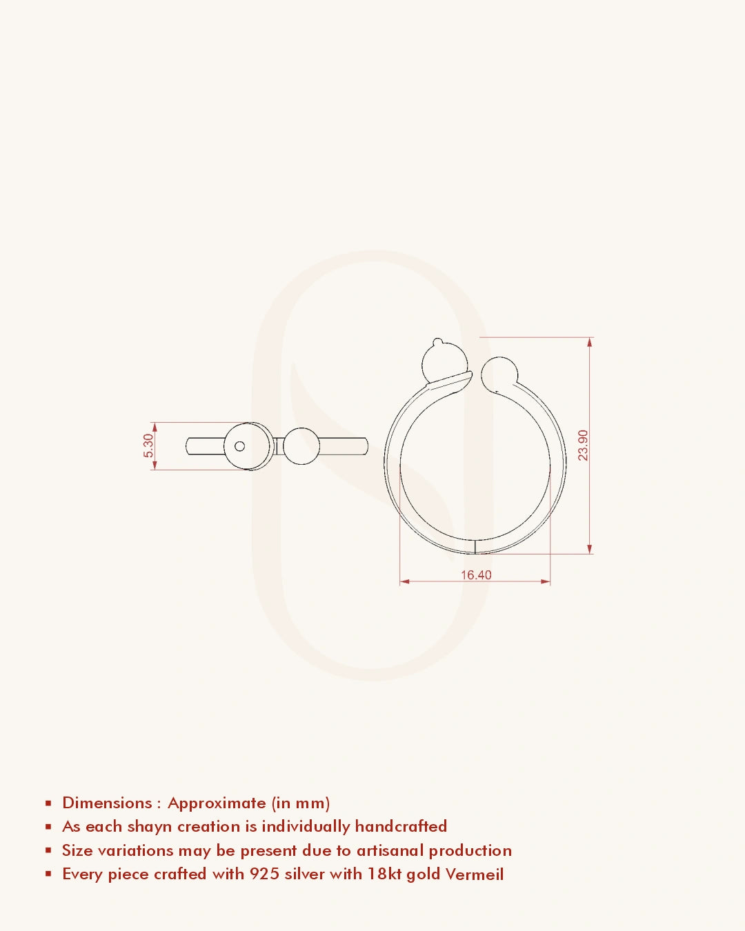 | Metal | 18KT Gold Vermeil (2.5 Microns Gold Layer on 925 Silver) |