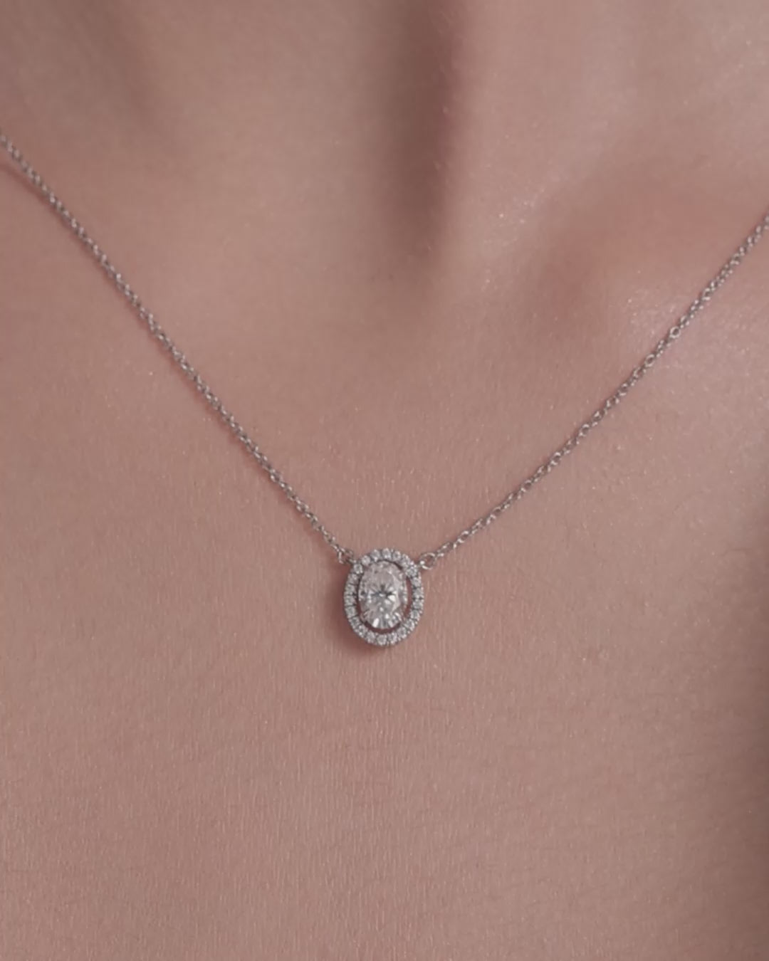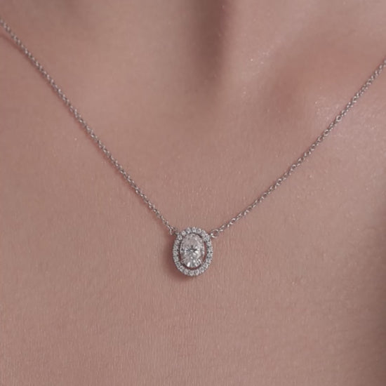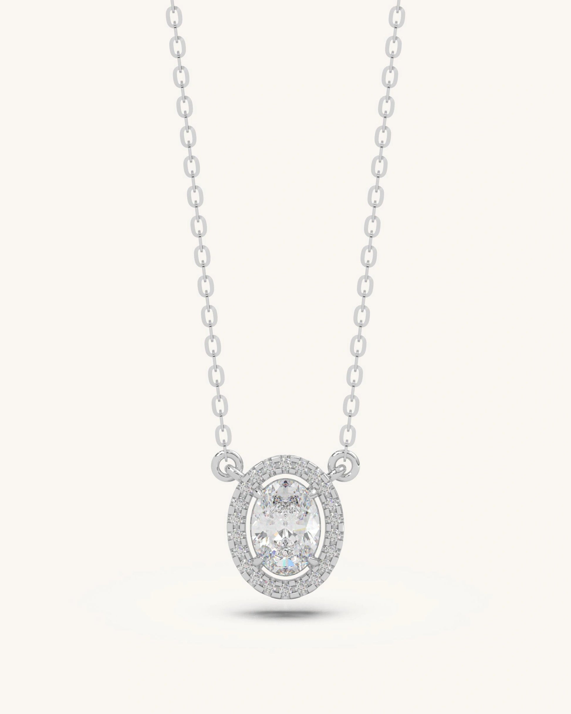 Featuring an oval-cut centerpiece with a radiant halo, this Necklace in 925 sterling silver with 18KT gold vermeil offers timeless beauty and brilliance.