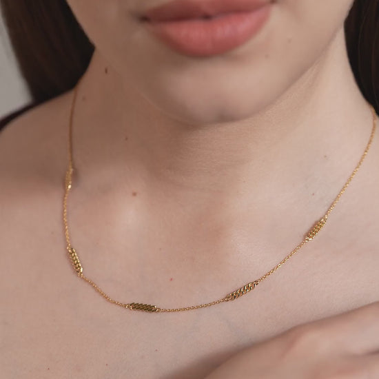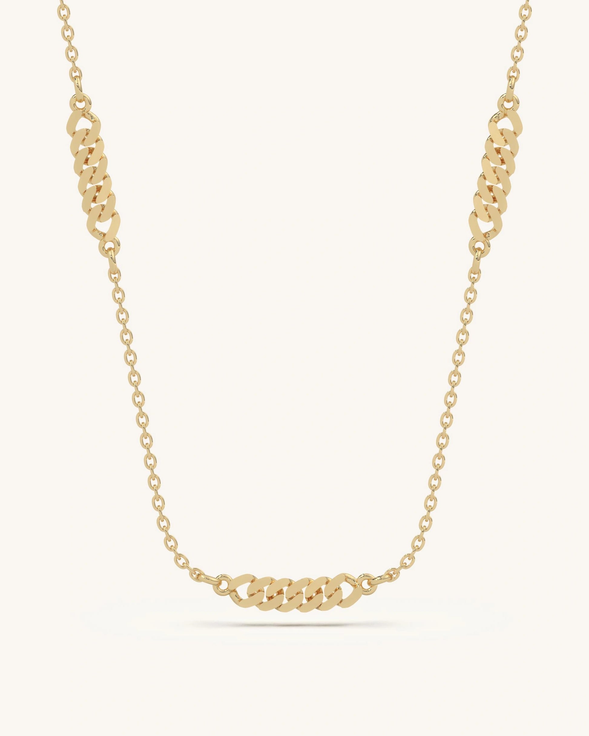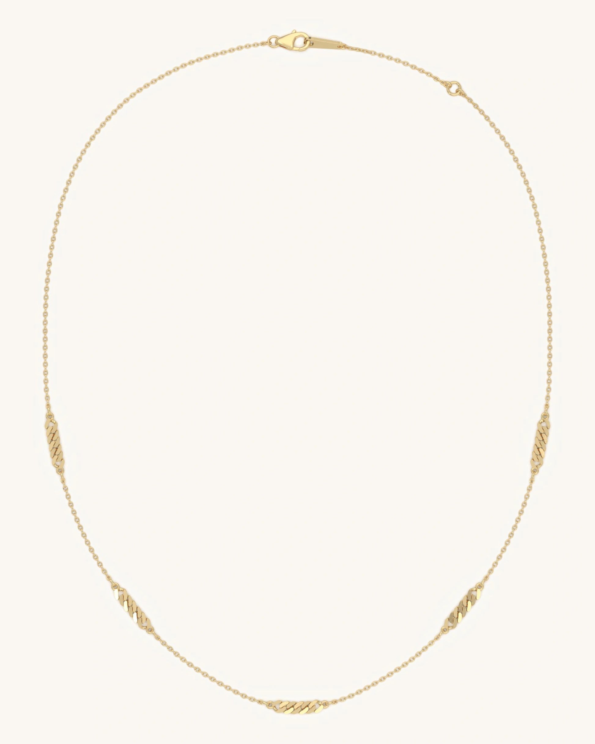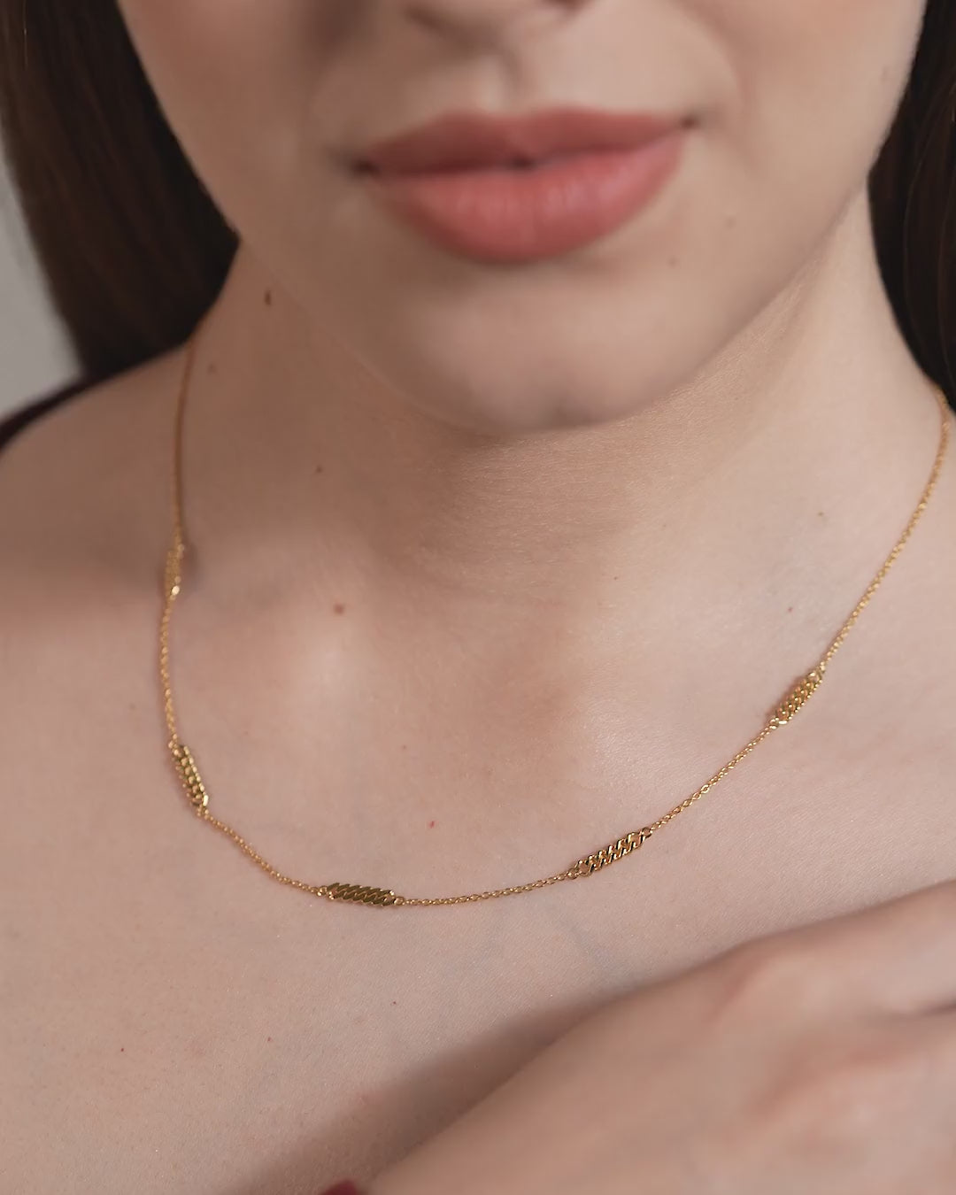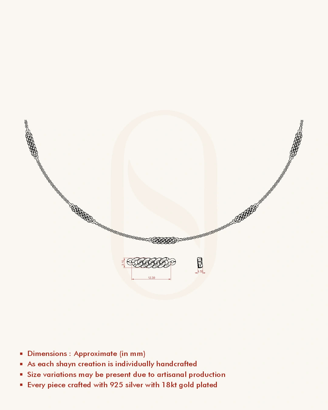 Handcrafted in 925 silver and polished in gold, the oval links are embellished with moissanite diamonds. Its elegant simplicity suits modern as well as traditional tastes.