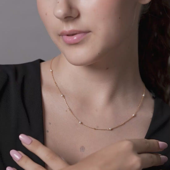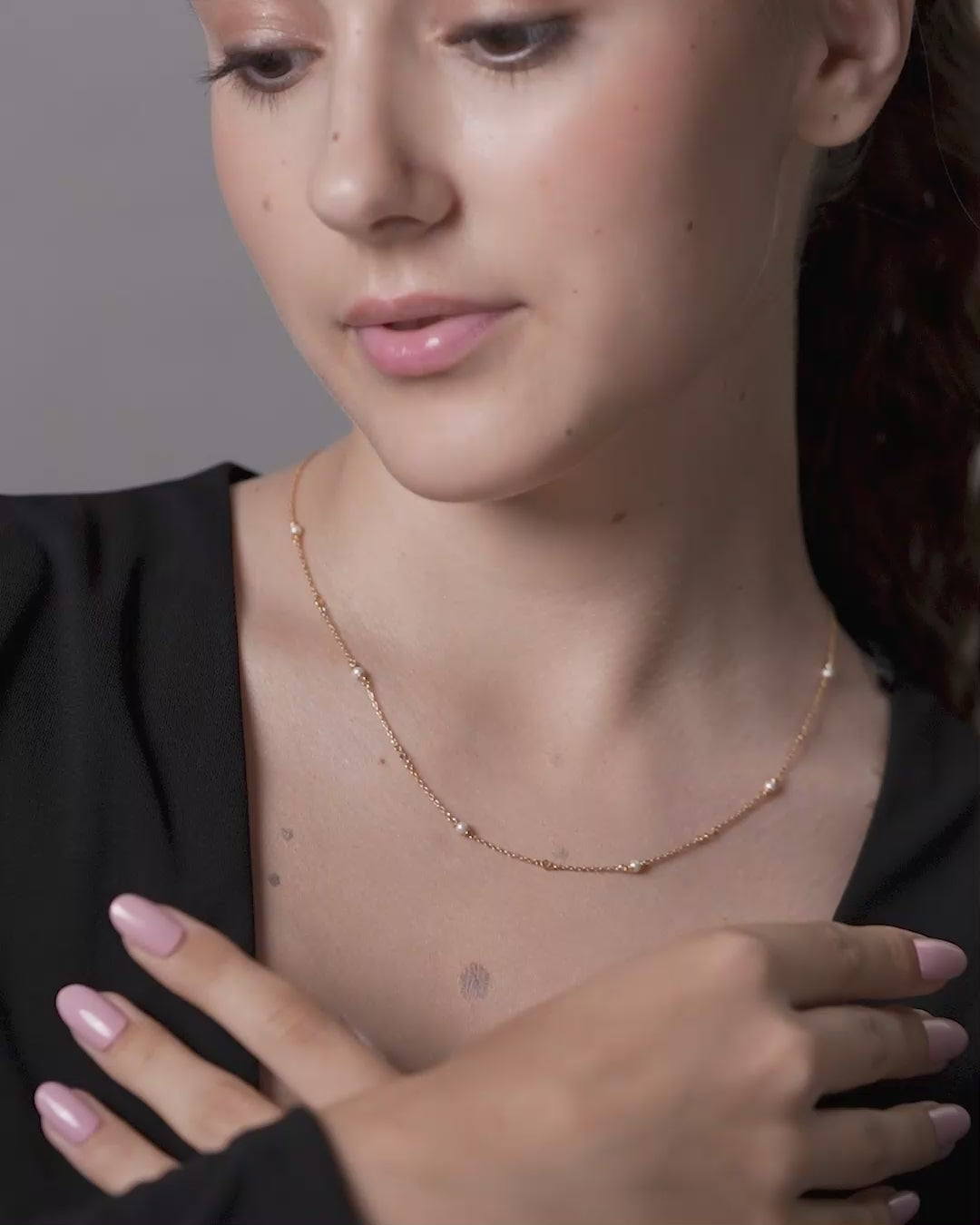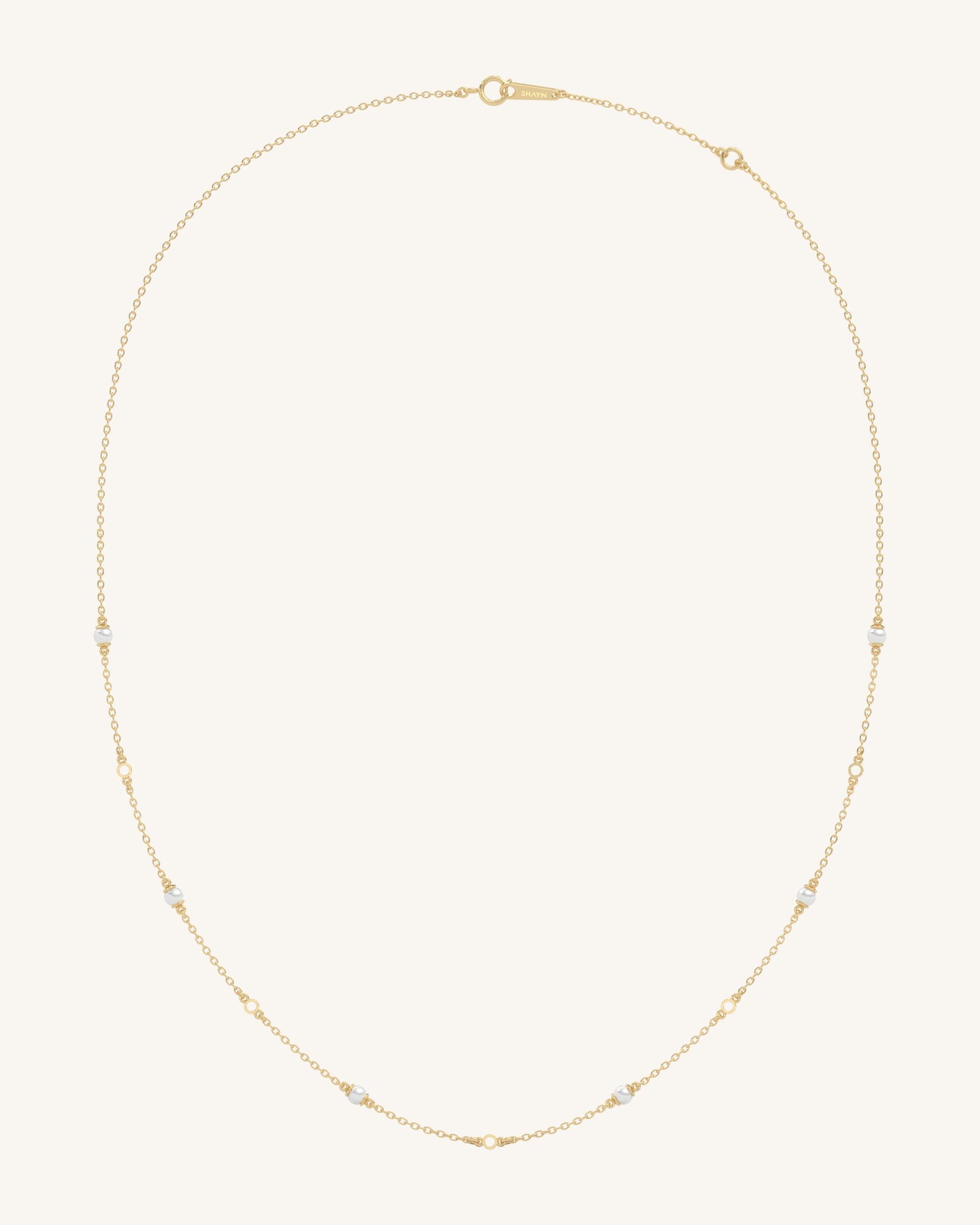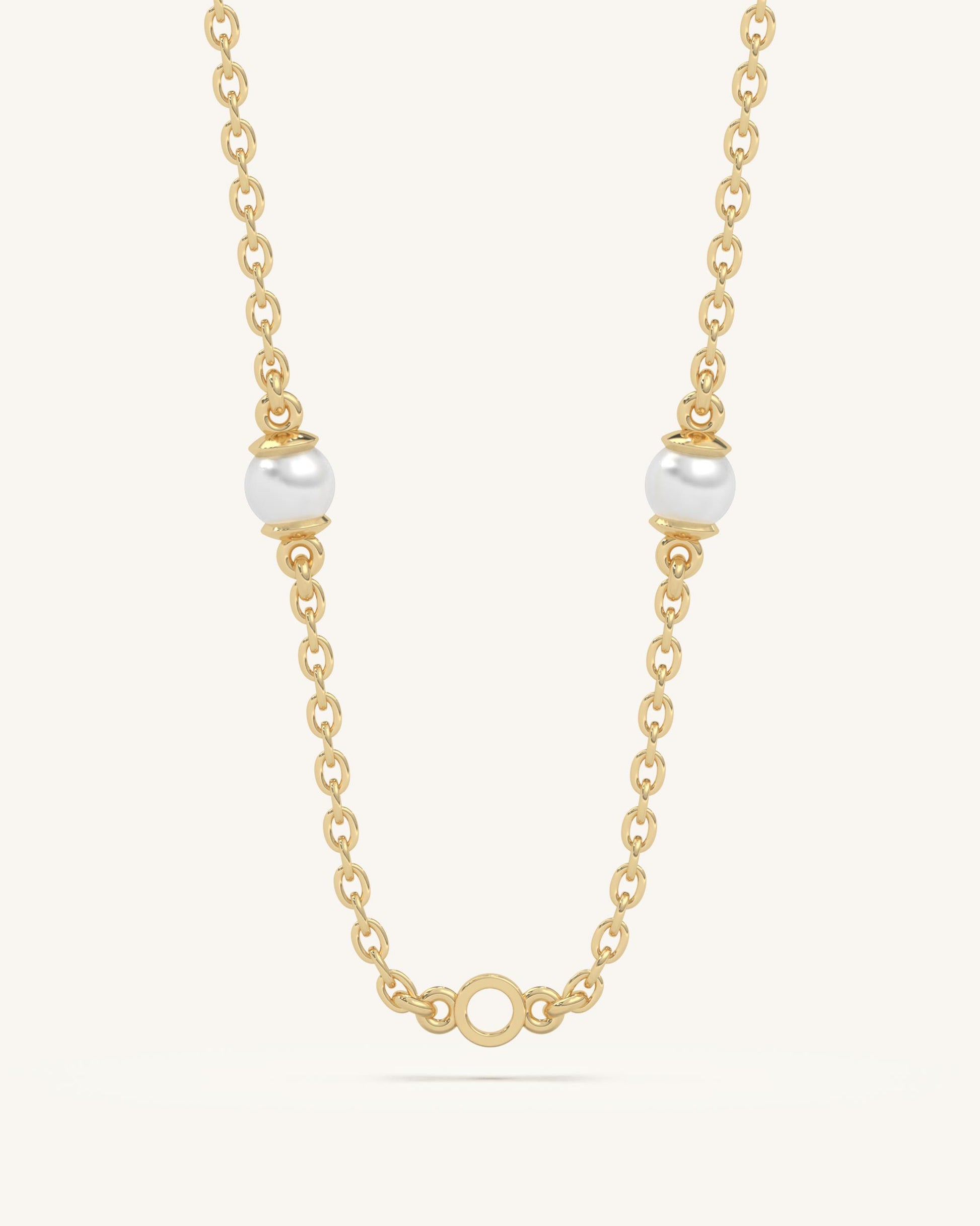 Classic chain punctuated with pearl bead stations, creating an elegant silhouette.