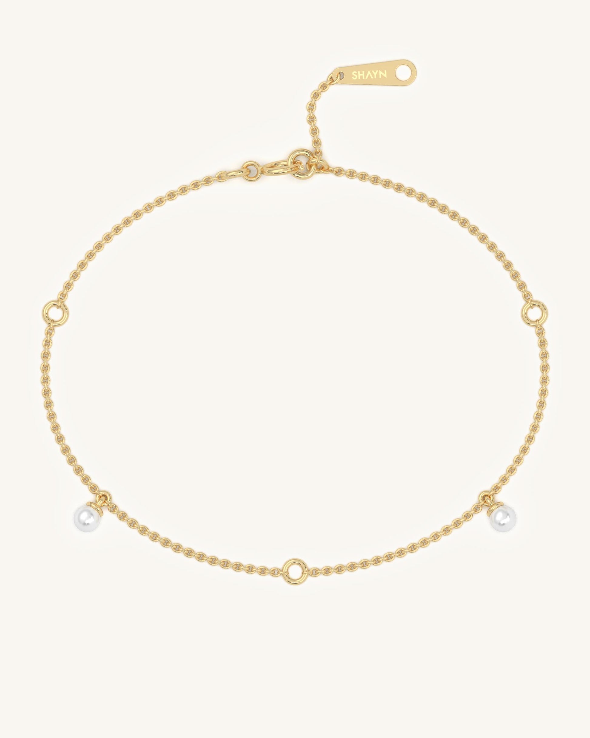 A graceful chain bracelet accented with two luminous pearls, placed asymmetrically for a playful, elegant touch. Minimal yet feminine.