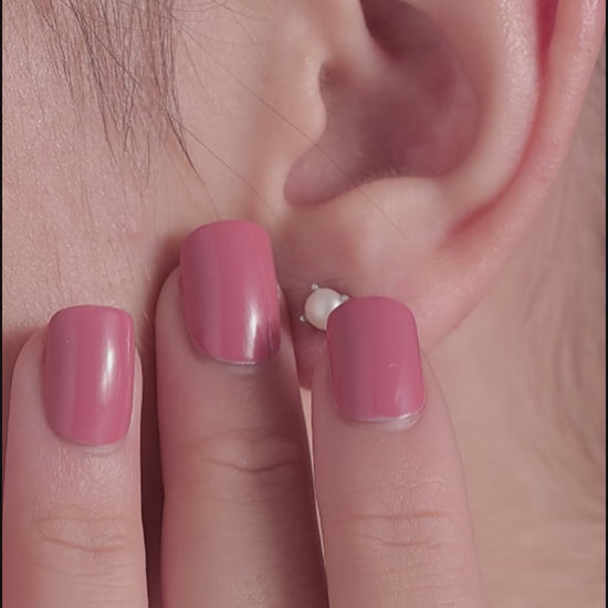 Minimal pearl-look studs with a soft, elegant glow. Designed for understated sophistication and everyday comfort.