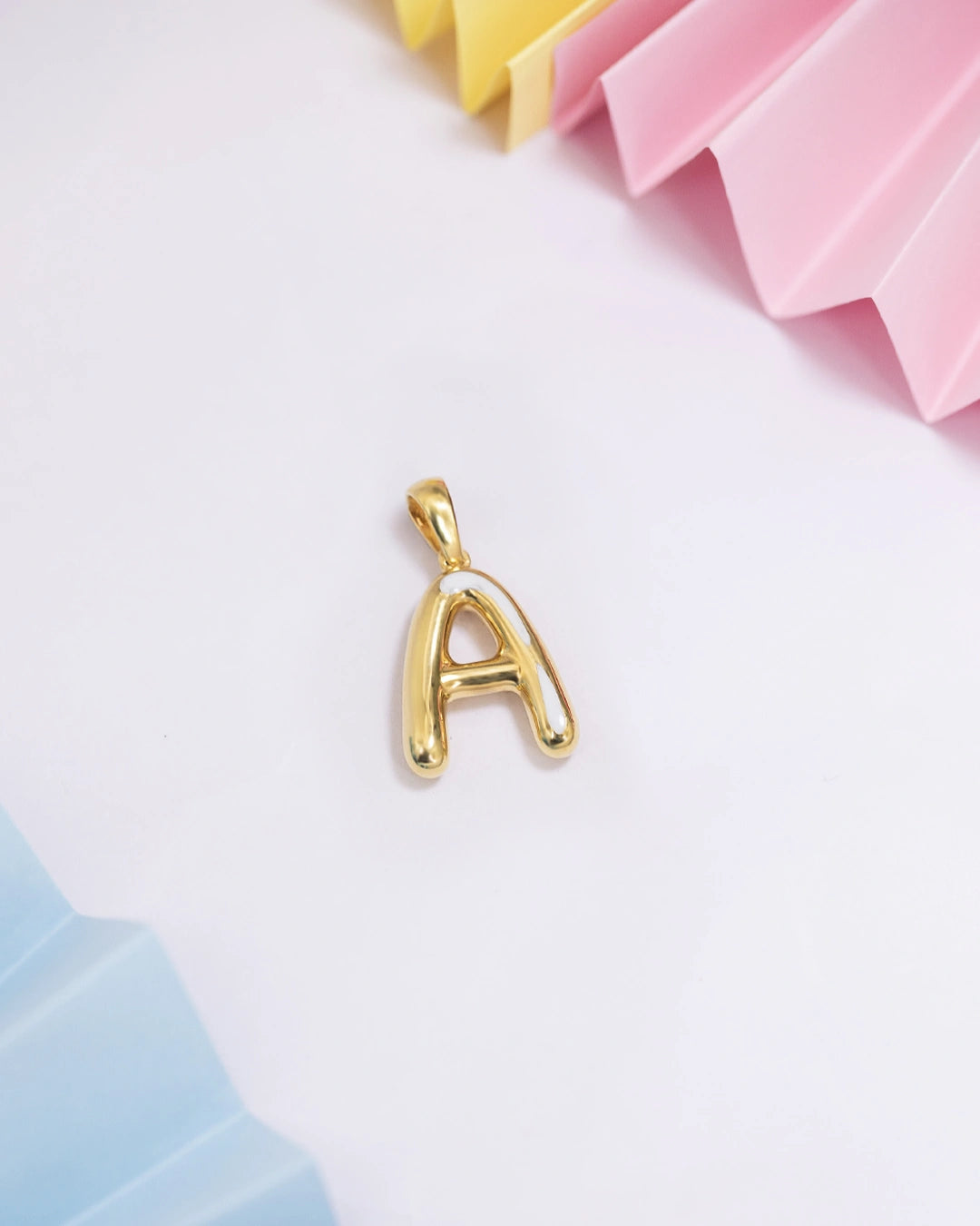 Made from 925 silver. Gold finish and smooth curves give it a refined, premium look. White enamel accent adds soft contrast and personality.