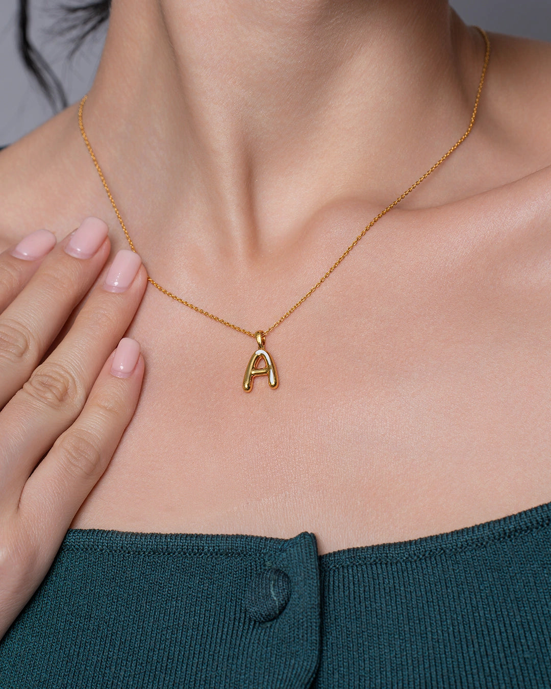 This pendant features the letter A to Z in a sleek gold form with a glossy white enamel finish. The rounded silhouette adds charm and elegance to the design. Perfect for everyday styling or gifting.