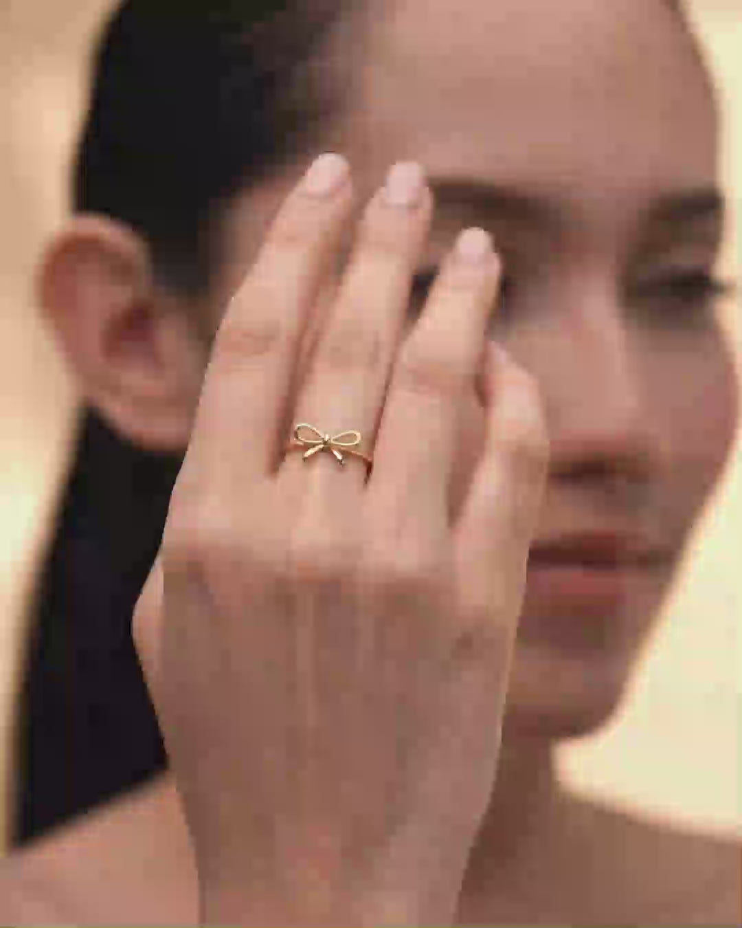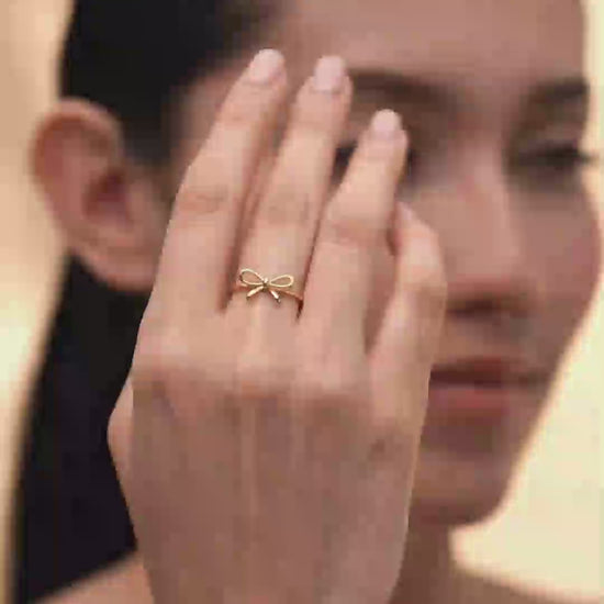 A slender gold bow with subtle curves and an open drop. Delicate and playful, this ring offers soft charm for any look.