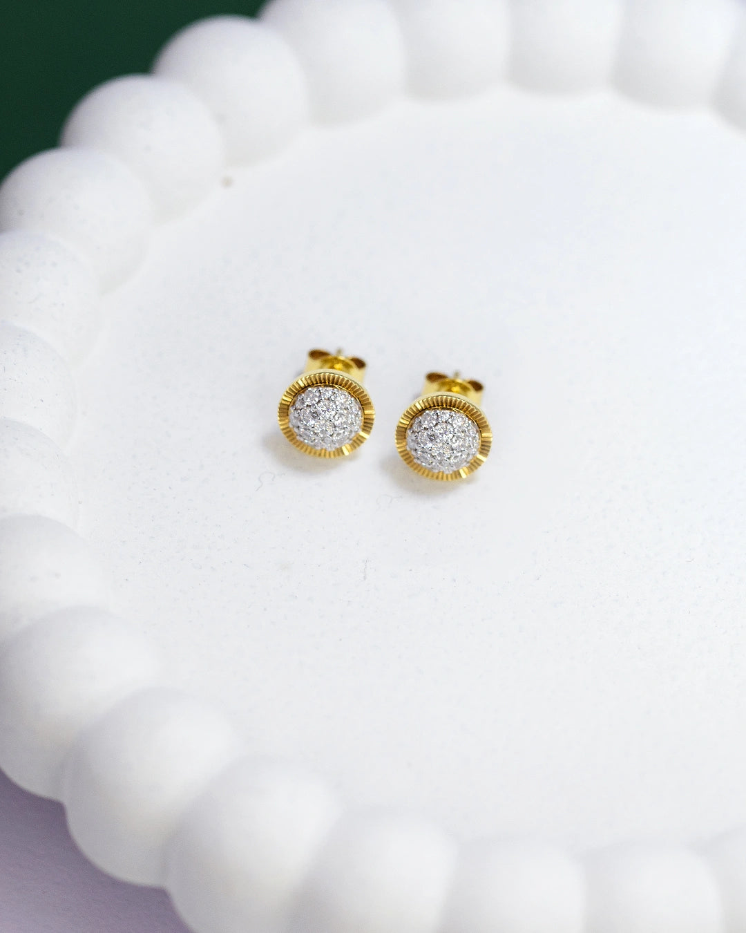 Crafted in 925 silver and finished with gold, the studs use premium moissanite stones to reflect light with exceptional brilliance. The design merges classic stud style with a fresh modern twist.