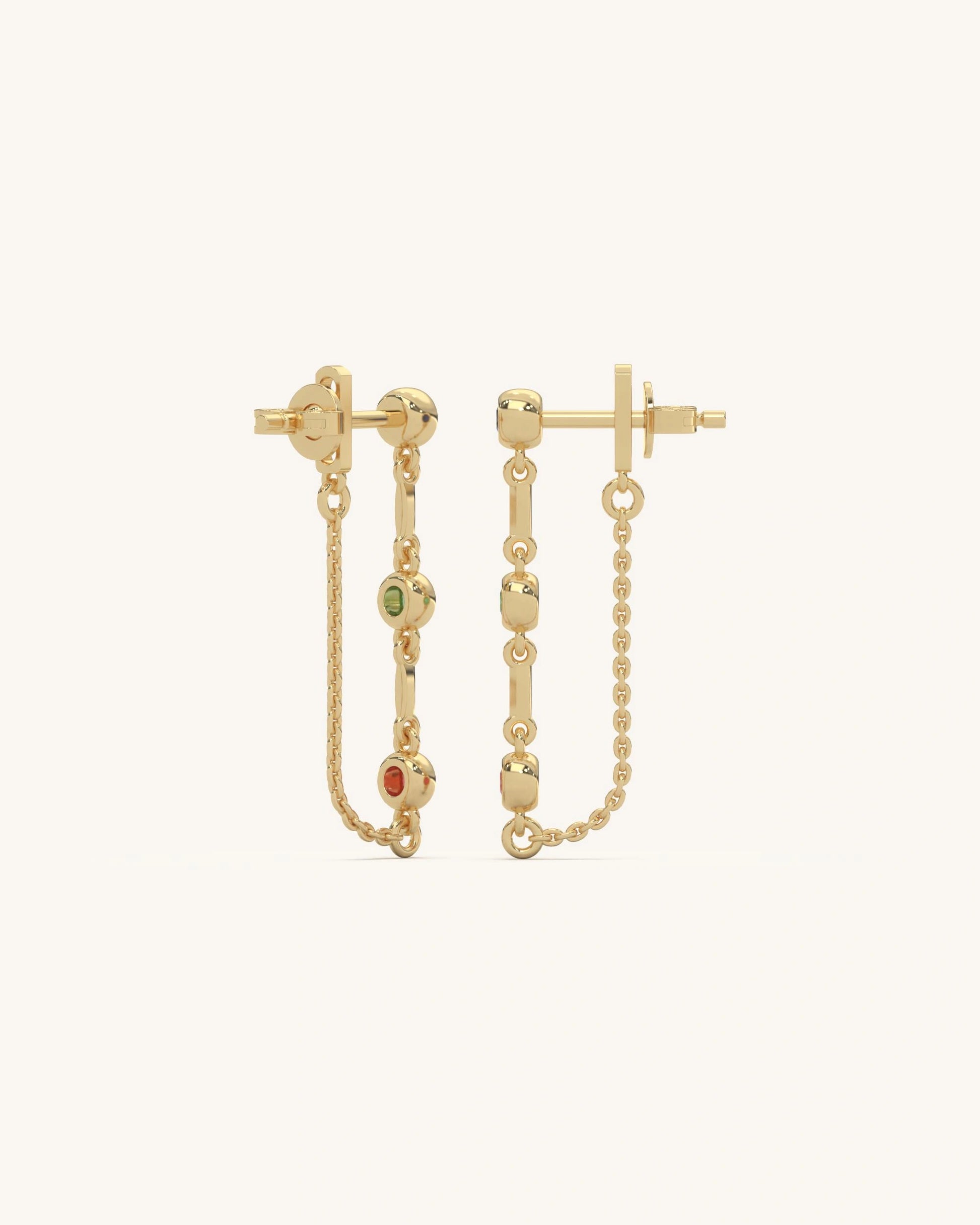 Made in 925 silver with multicolored stones and gold tone plating. Playful movement with a stylish finish.
