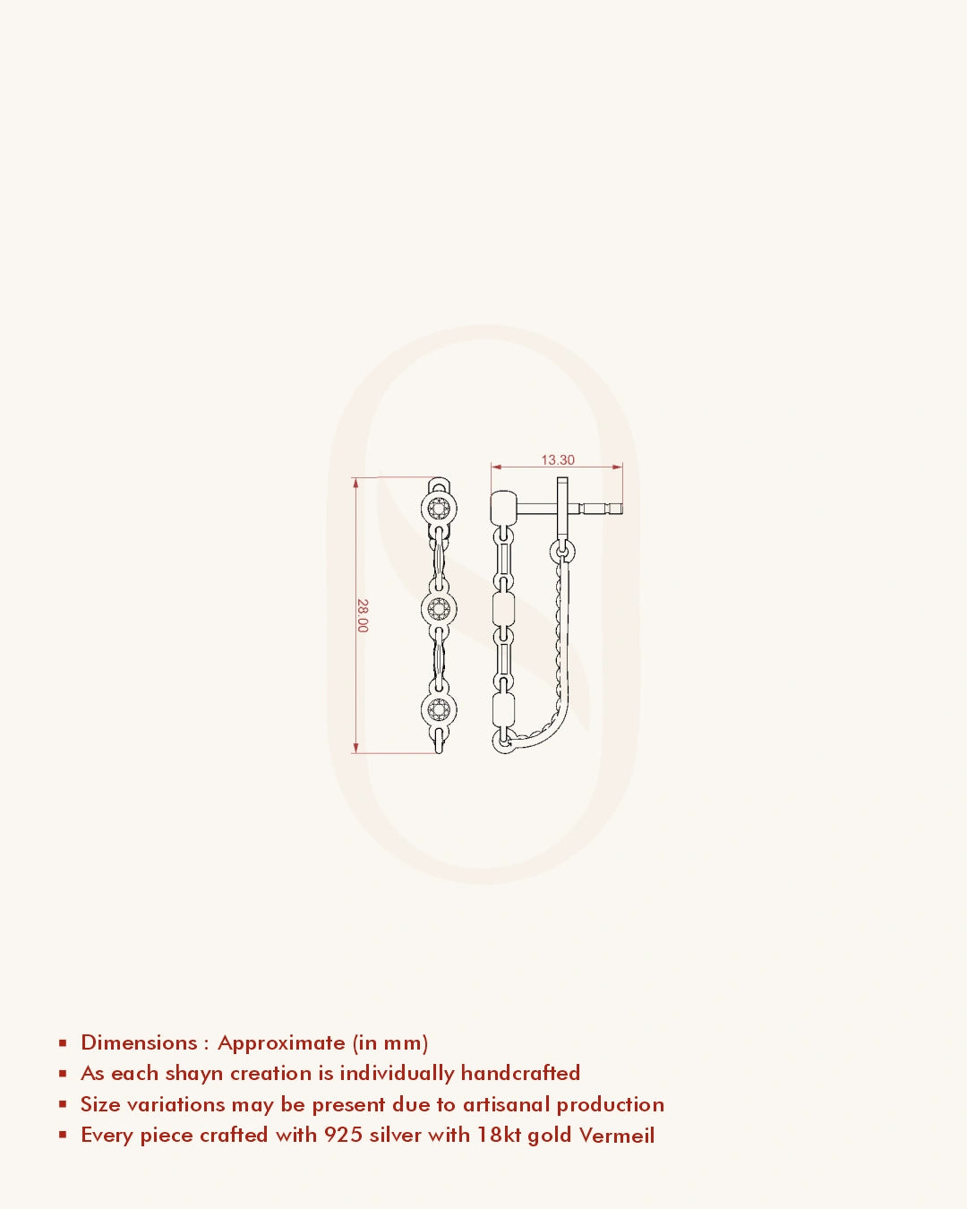 | Metal | 18KT Gold Vermeil (2.5 Microns Gold Layer on 925 Silver) |