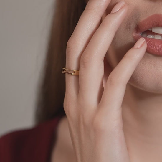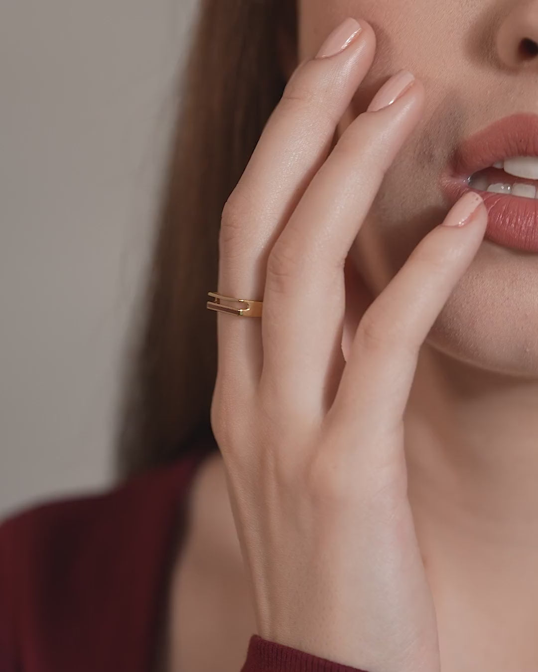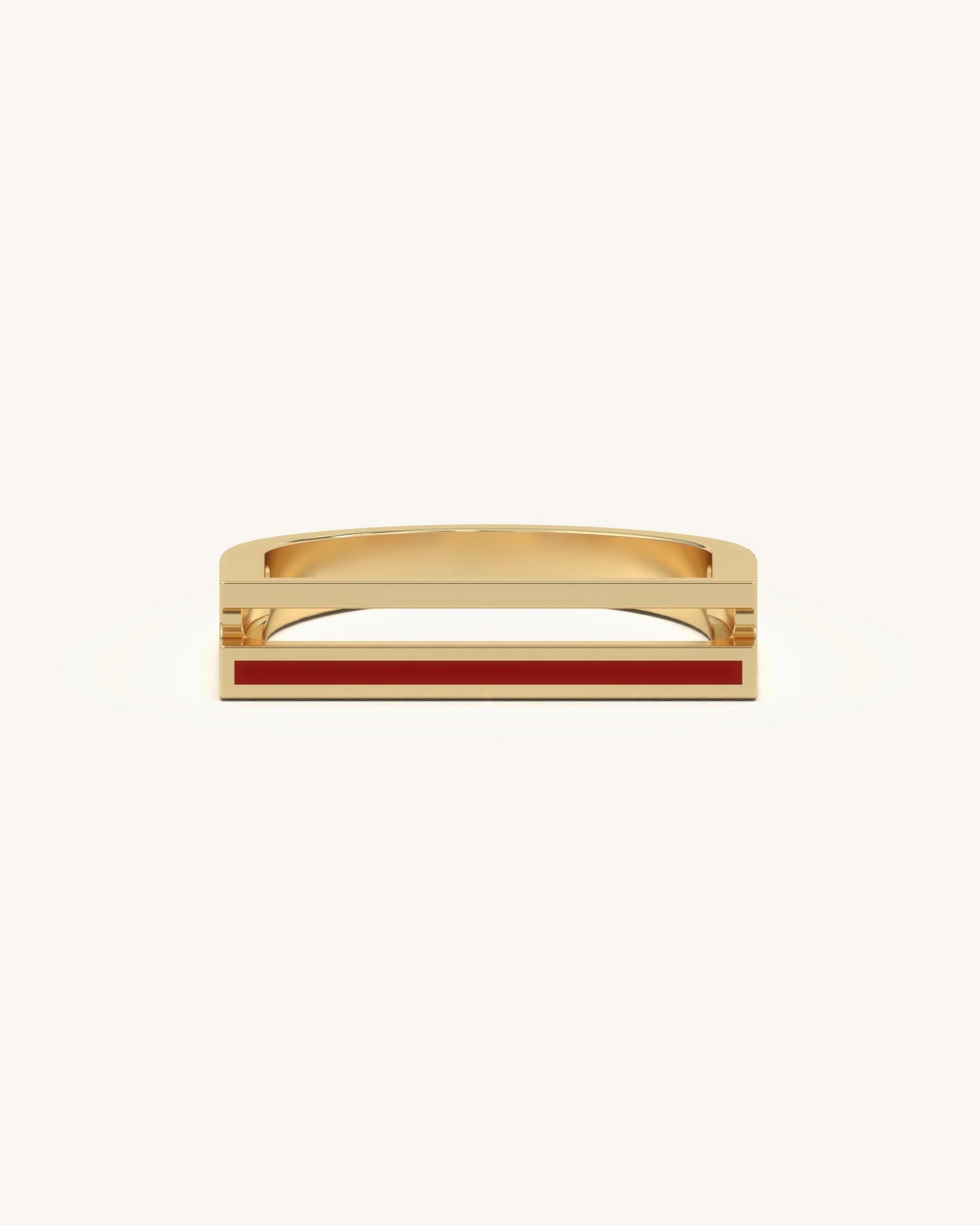 The deep red enamel set within a polished gold structure offers a Timeless yet trendy appeal, suitable for all genders.