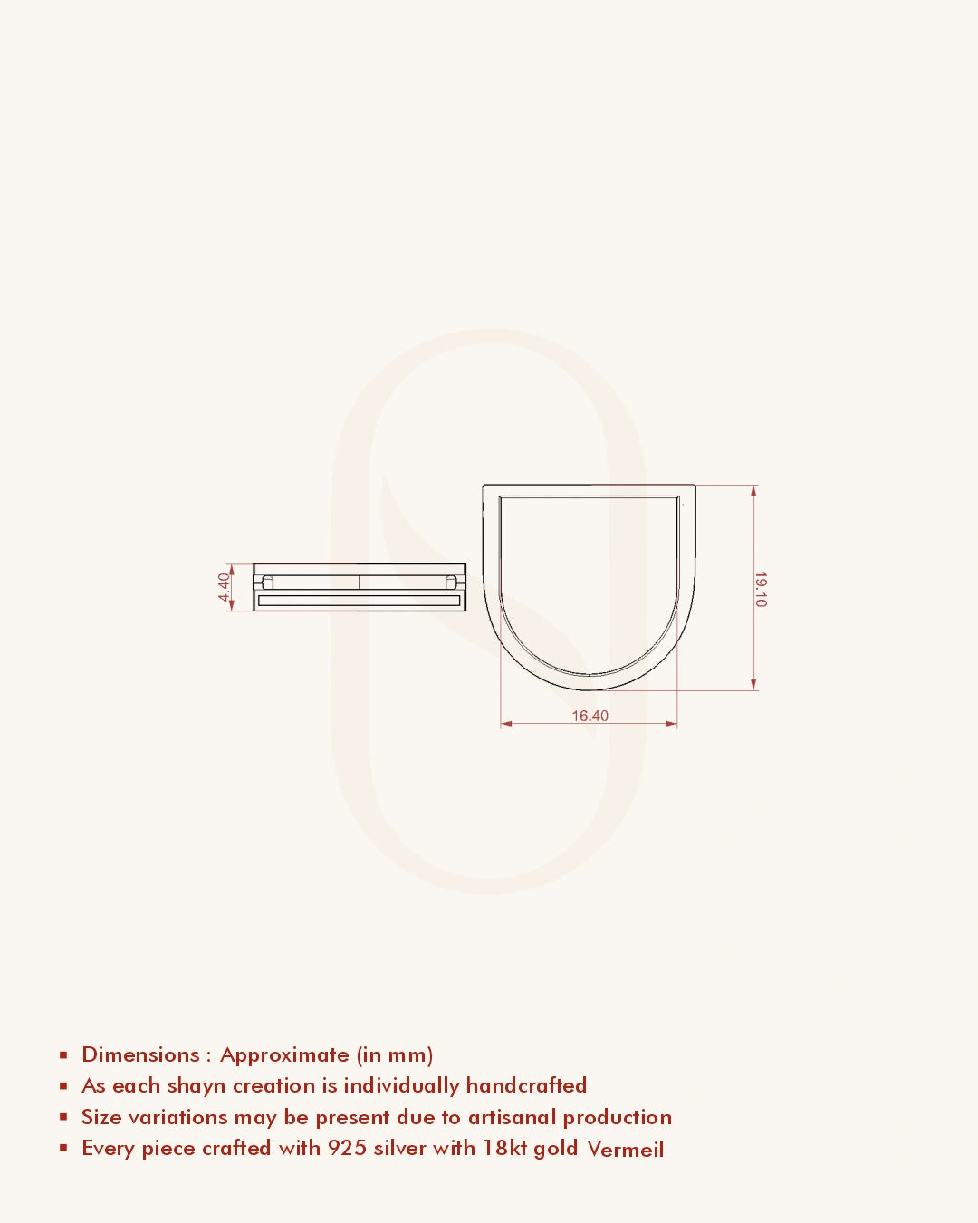 | Metal | 18KT Gold Vermeil (2.5 Microns Gold Layer on 925 Silver) |