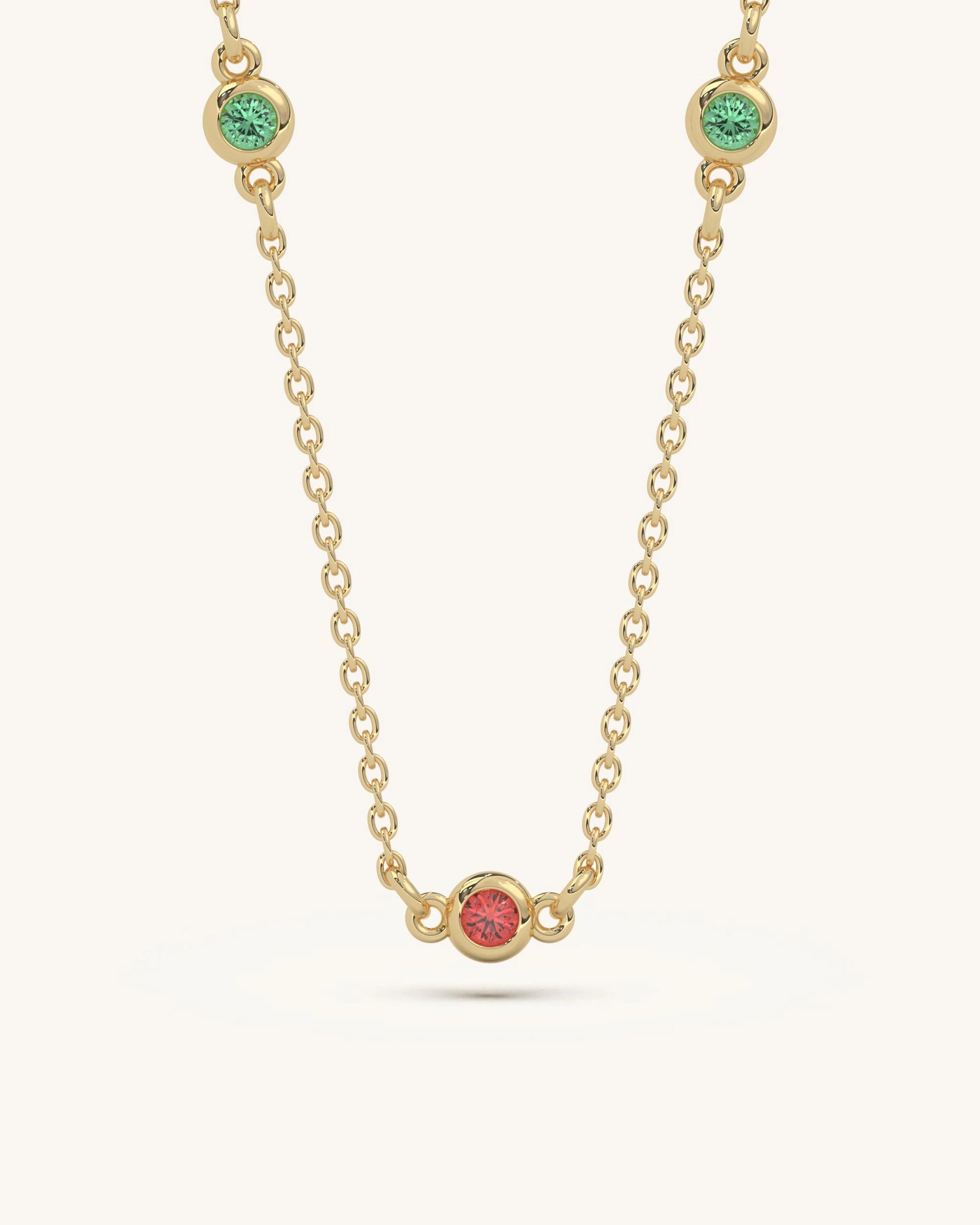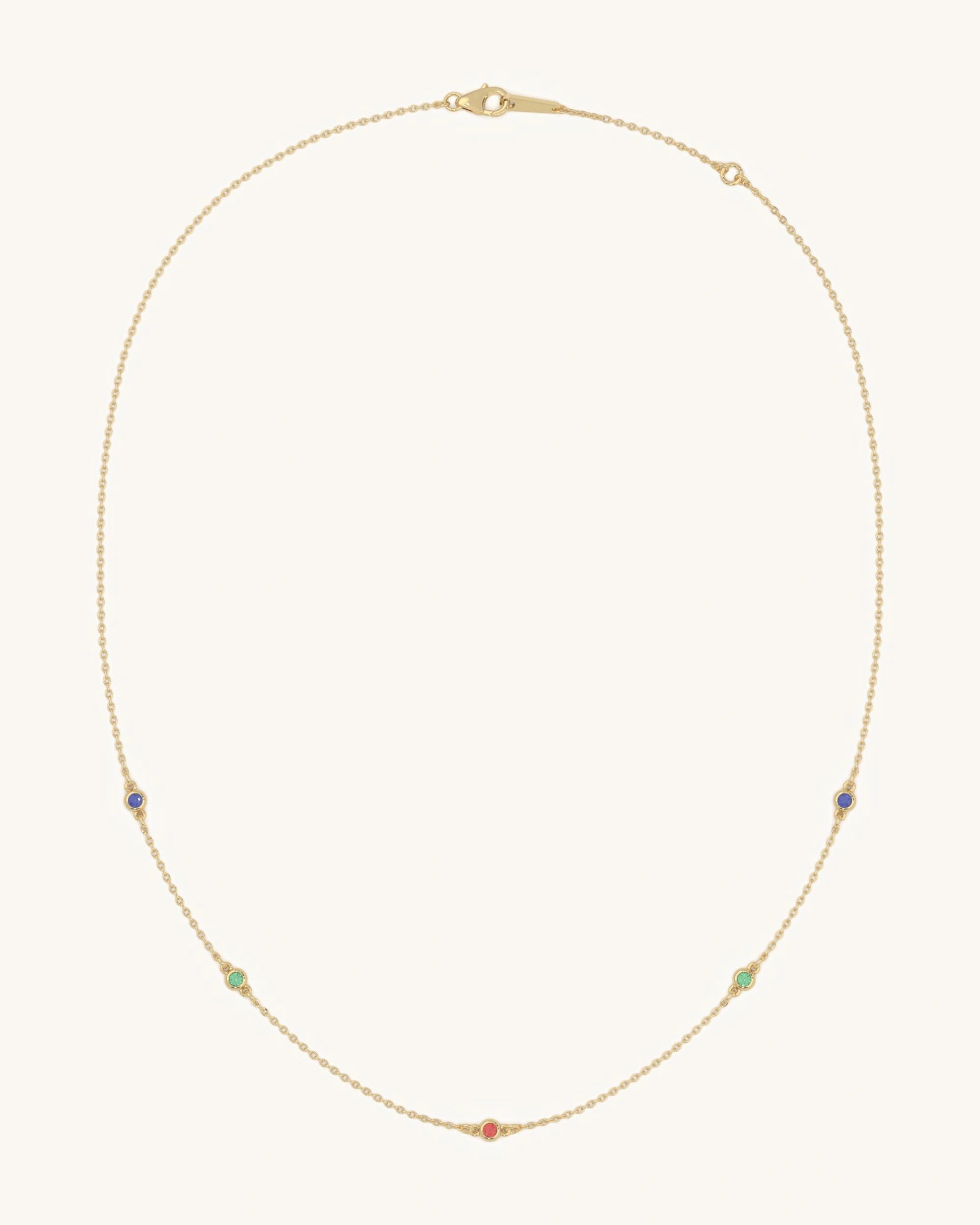 Crafted in 925 silver with gold tone plating. The colored stones add a fun twist to a classic chain design.