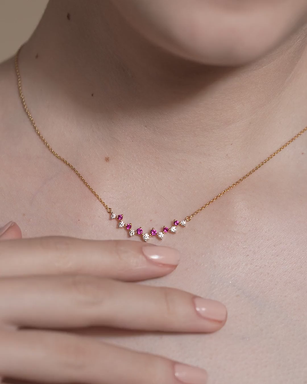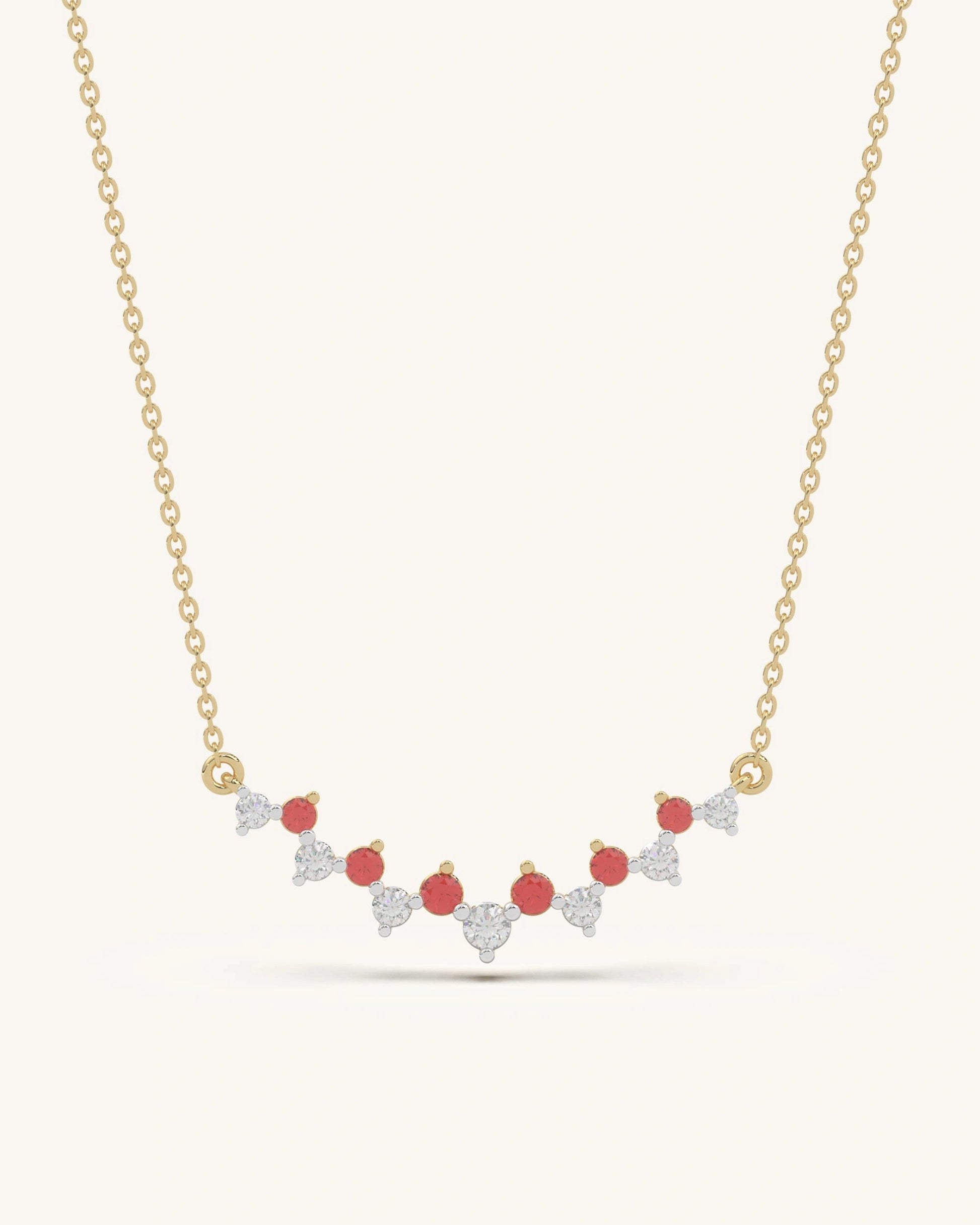 Made in 925 Sterling Silver 18KT Gold Vermeil with moissanite diamonds and red stones. Gold tone finish enhances the lively aesthetic.