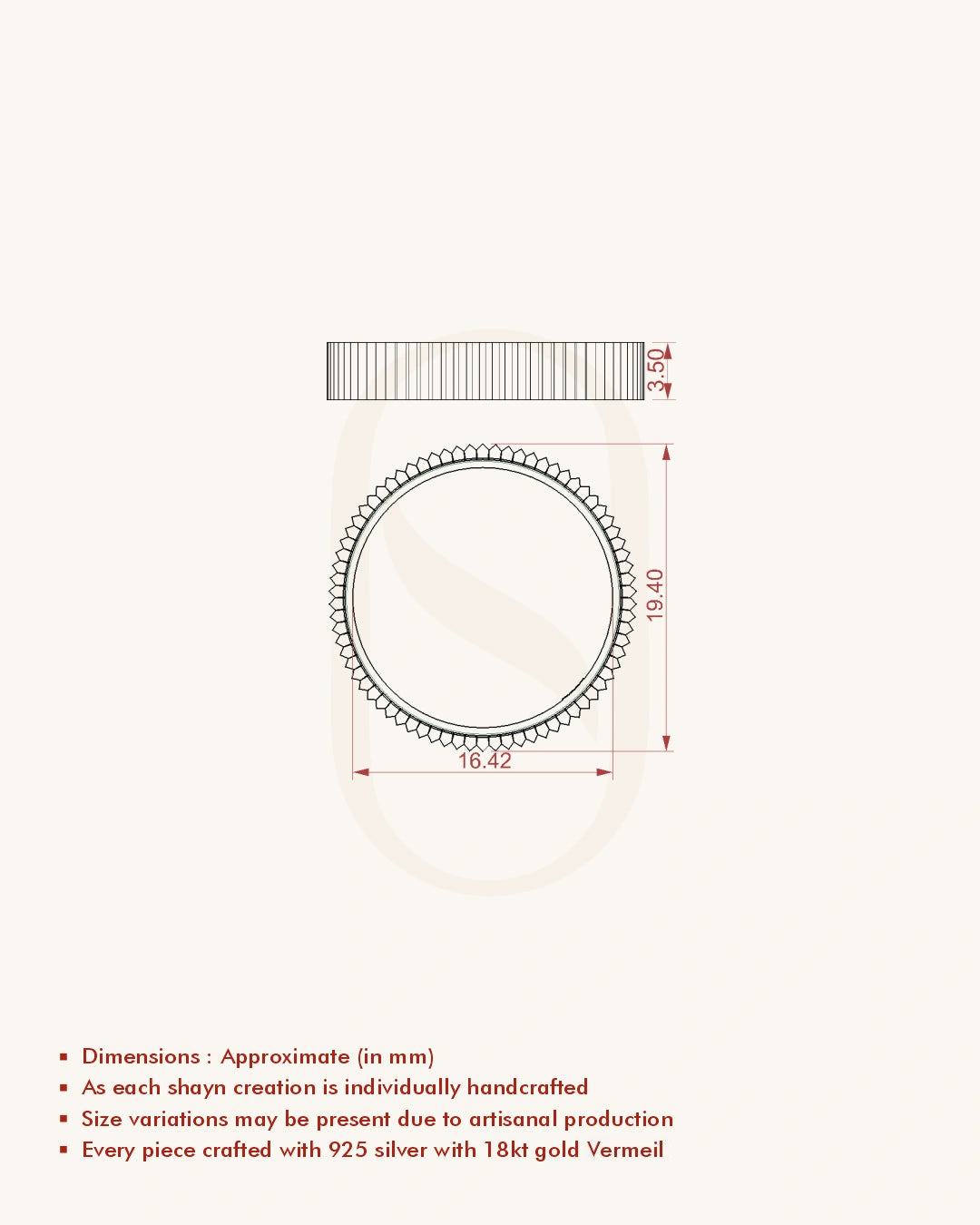 | Metal | 18KT Gold Vermeil (2.5 Microns Gold Layer on 925 Silver) |