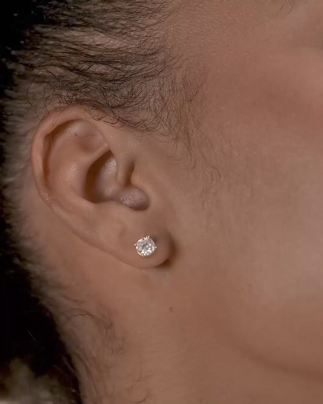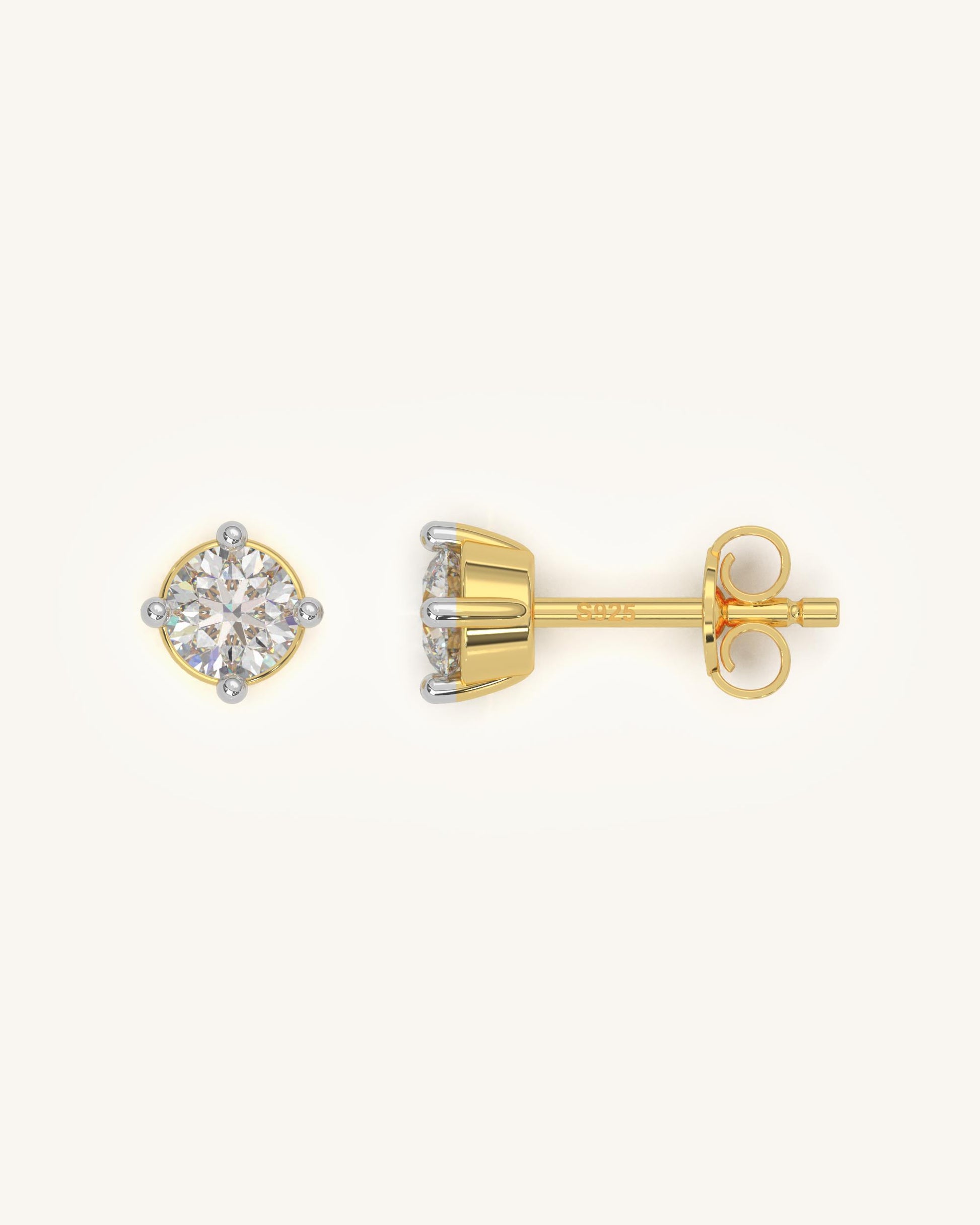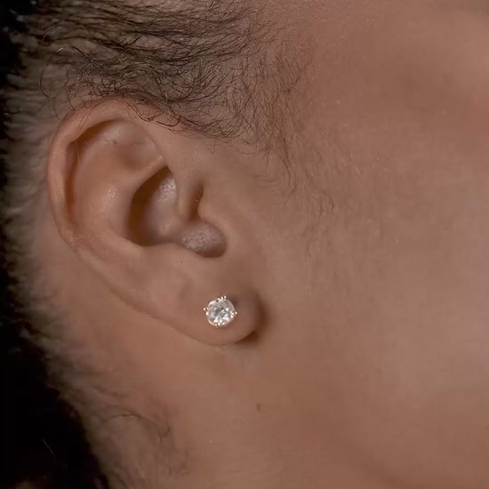 Elegant round-cut moissanite earrings held by four prongs. Gives a fuller appearance and secure hold.