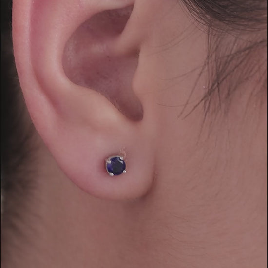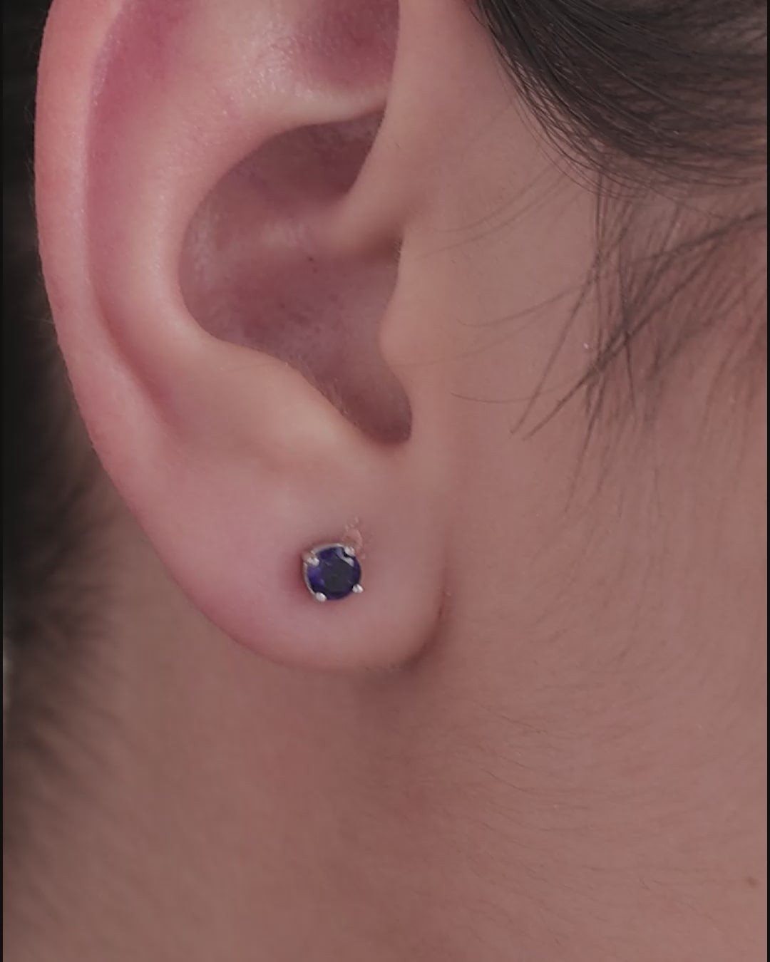 Deep blue sapphire-inspired studs set in a classic round prong setting. A timeless everyday essential that adds elegance with a rich, real-gold look.