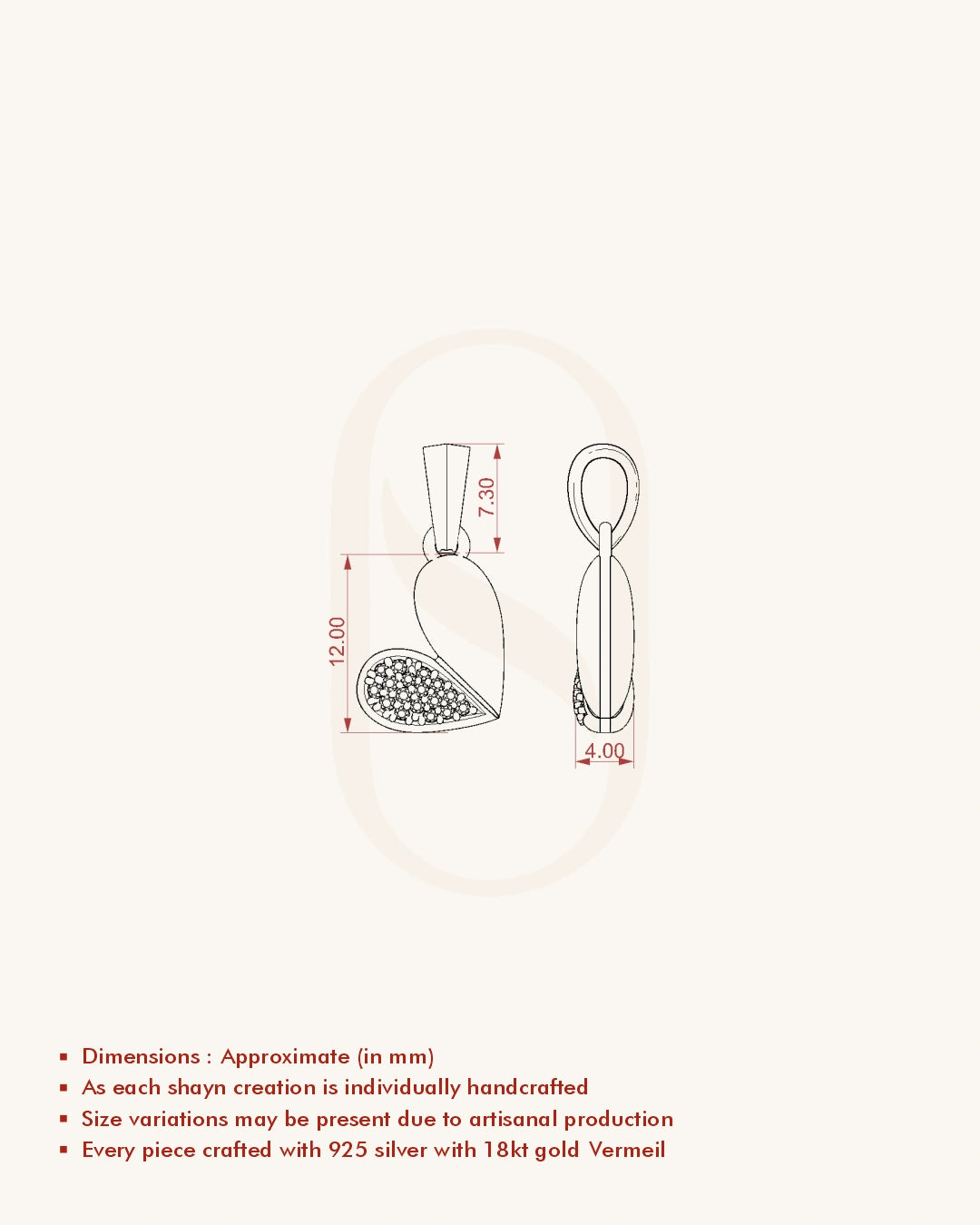| Metal | 18KT Gold Vermeil (2.5 Microns Gold Layer on 925 Silver) |