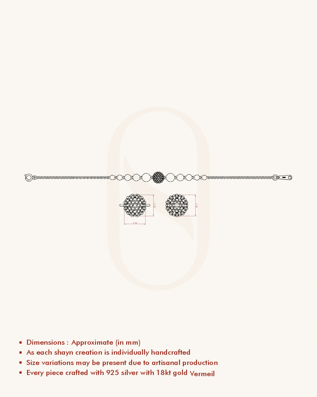 | Metal | 18KT Gold Vermeil (2.5 Microns Gold Layer on 925 Silver) |