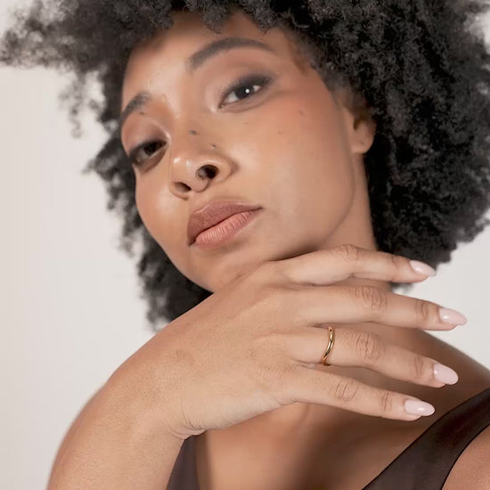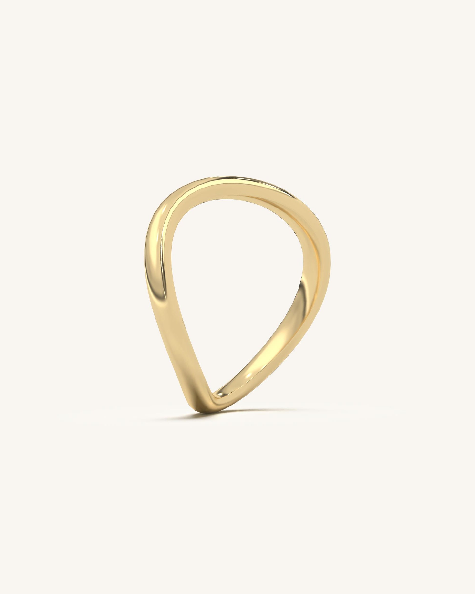 This ring features a smooth wave-like curve in a high-polish finish. The sleek silhouette gently tapers and flows in an organic form, perfect for daily elegance. Its simple yet fluid structure offers a modern take on Timeless style.