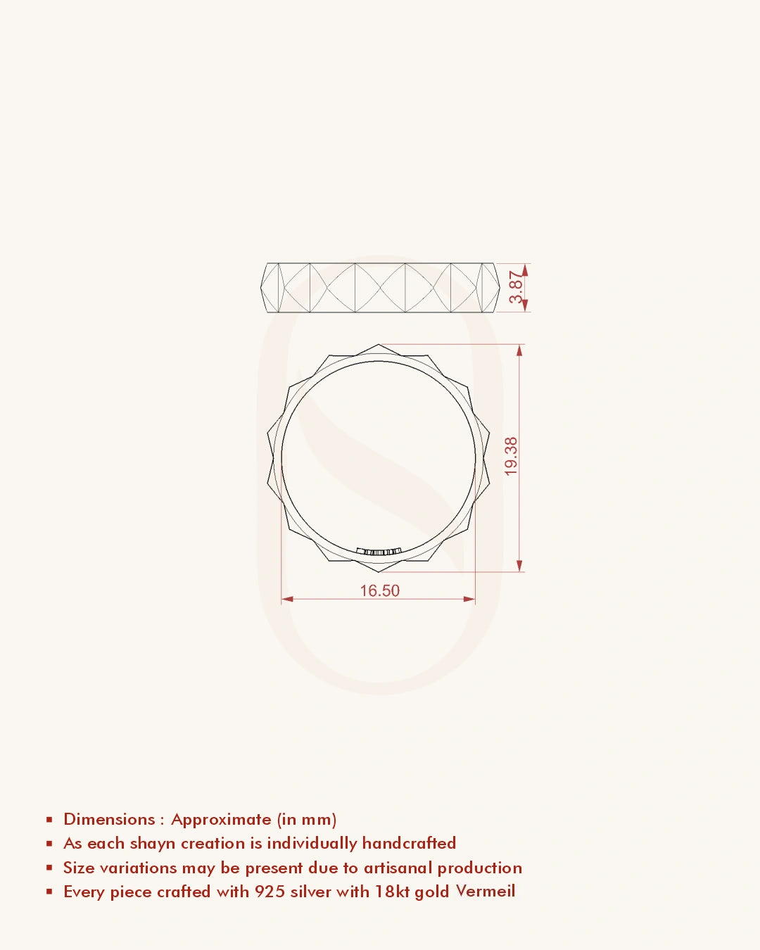 | Metal | 18KT Gold Vermeil (2.5 Microns Gold Layer on 925 Silver) |
