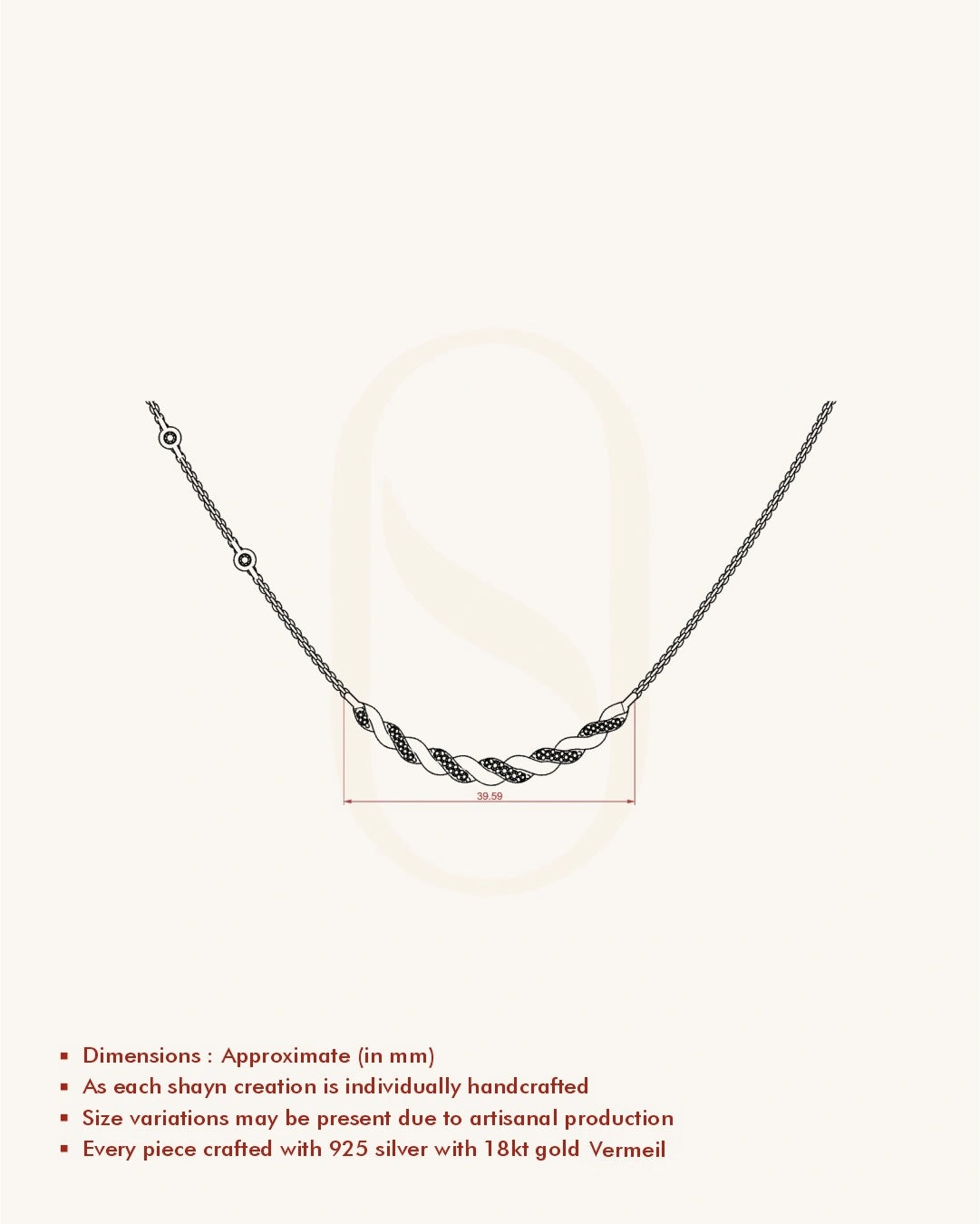 Elegant bar necklace with twisted gold and pave stone accents along a smooth chain. The curved pendant rests gently along the neckline, offering both structure and sparkle.