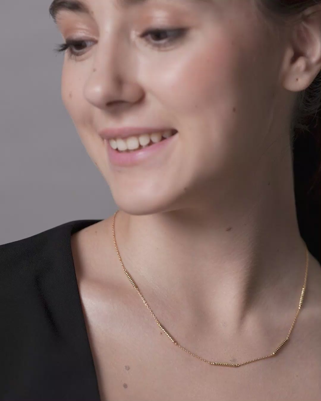 Chain necklace with evenly spaced twisted bar elements, adding a subtle texture.