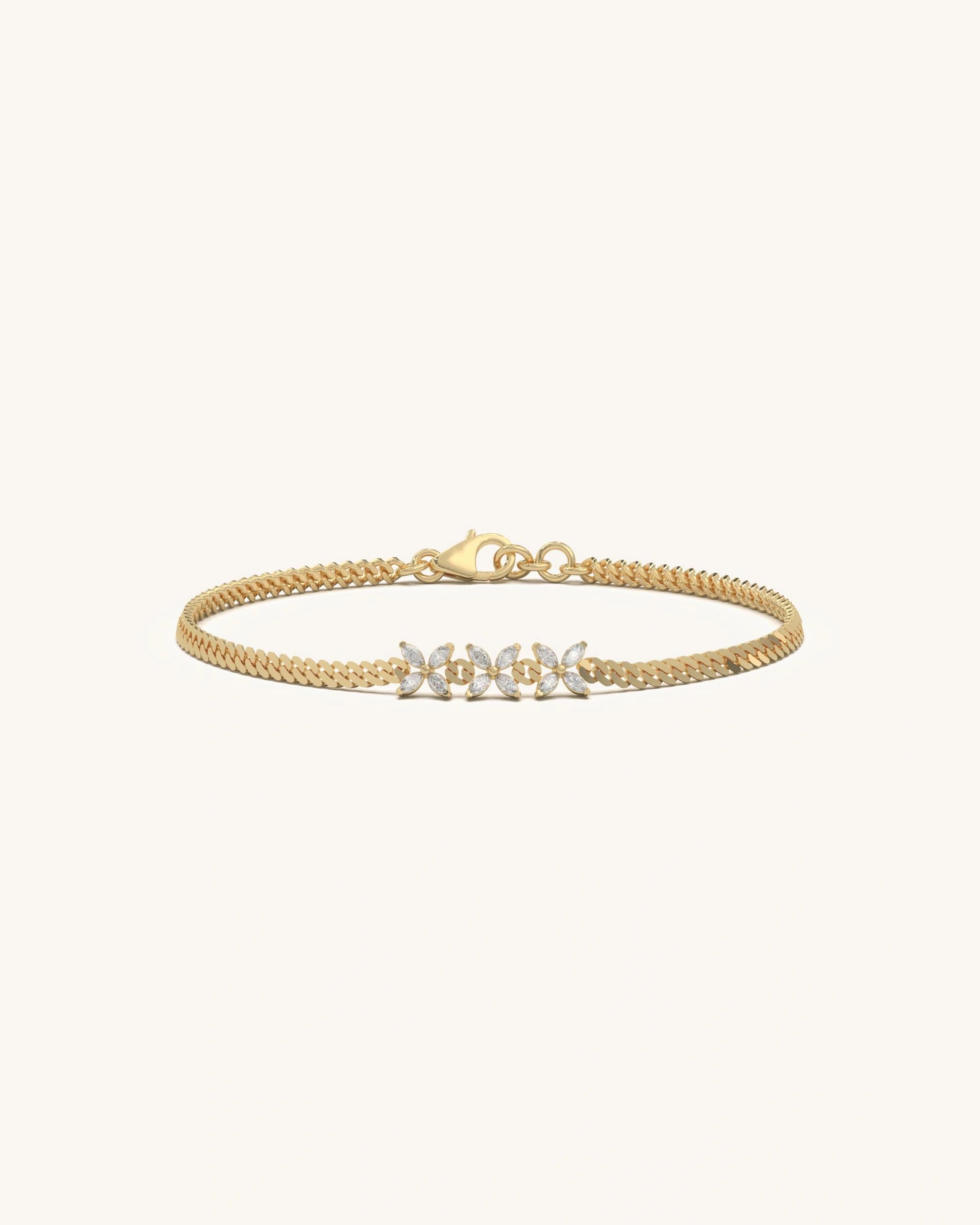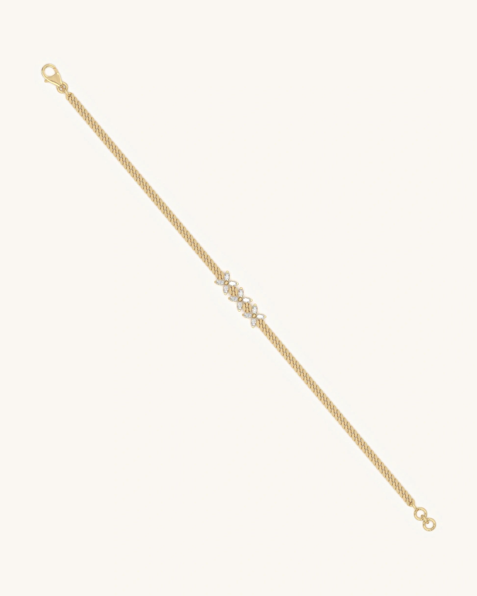 Designed in rose gold plated 925 silver, accented with three symmetrical butterfly diamond clusters.
