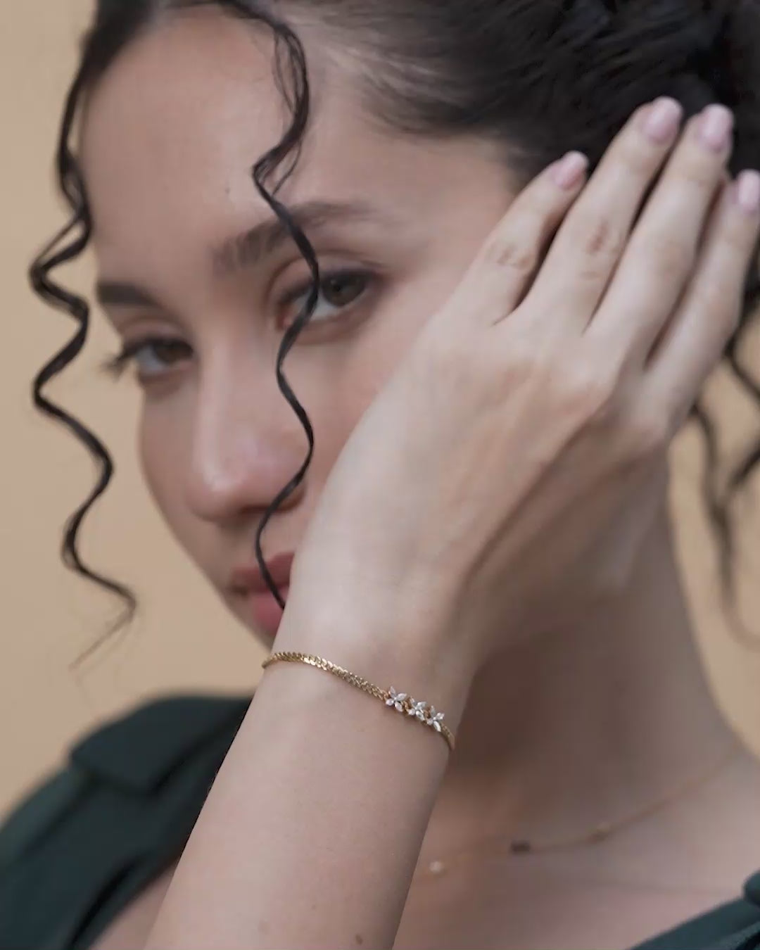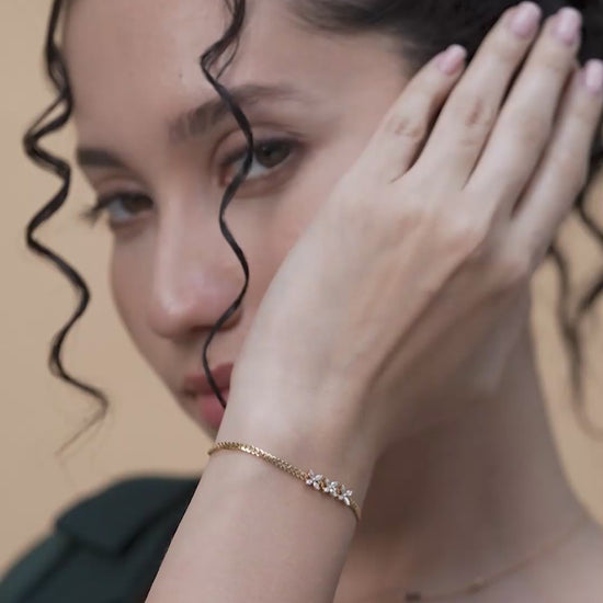 Delicate butterfly-shaped diamond motifs flutter across the center of this refined bracelet.