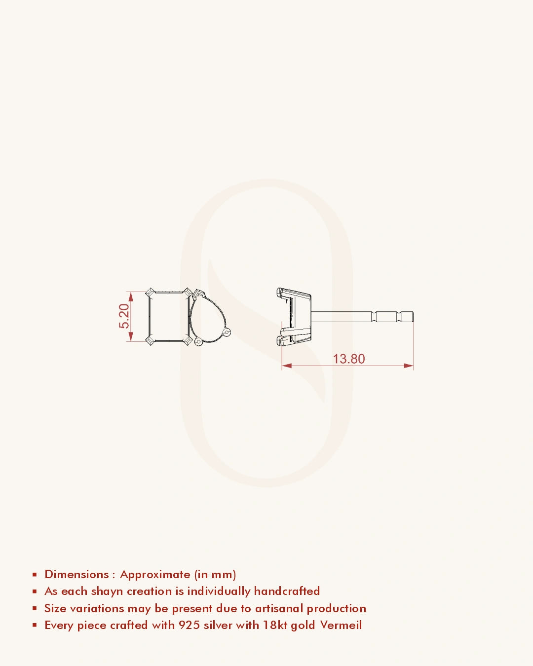 | Metal | 18KT Gold Vermeil (2.5 Microns Gold Layer on 925 Silver) |