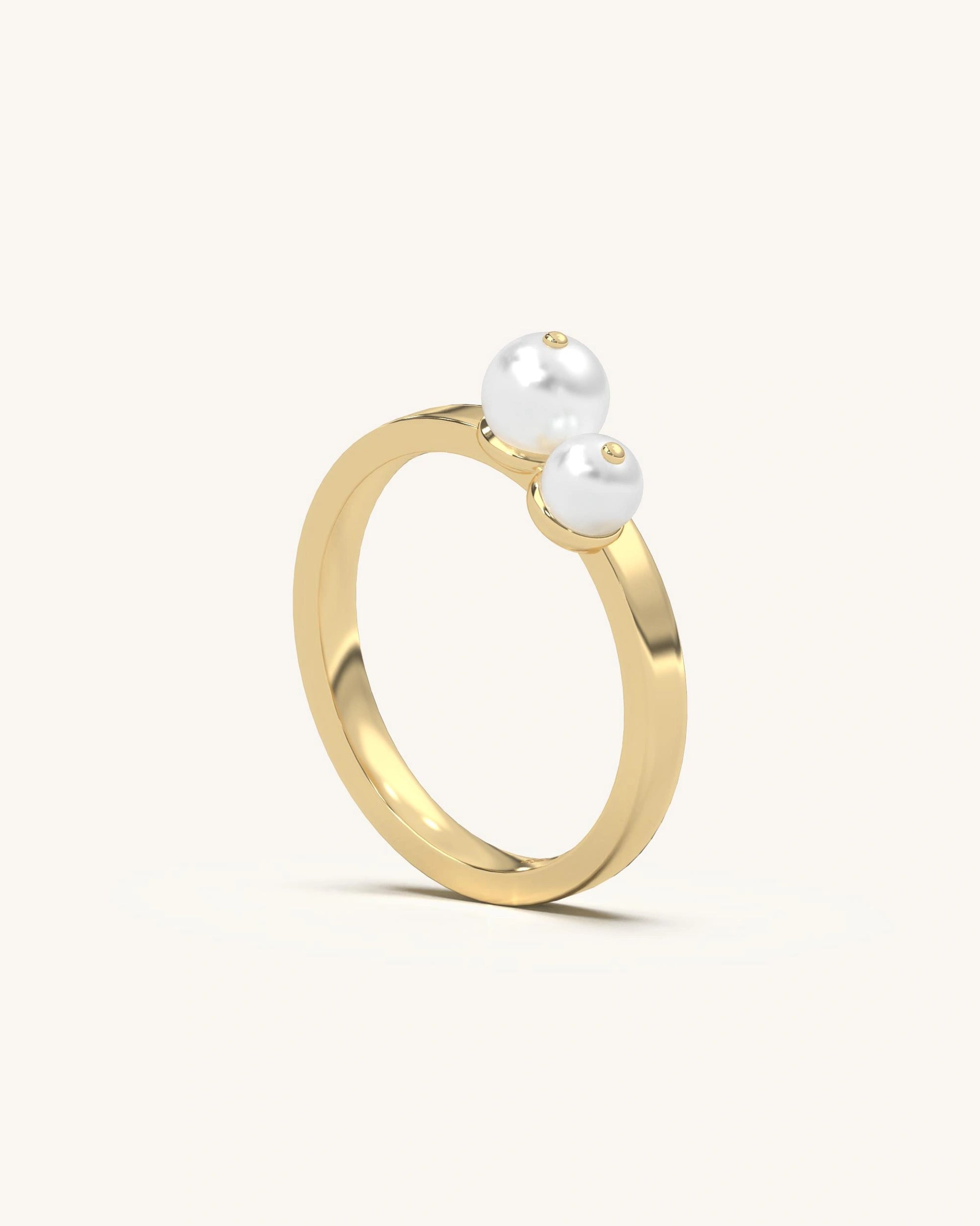 Composed of 925 silver metal with a smooth gold finish, this ring does not include moissanite diamonds but brings out the pure beauty of natural pearls.