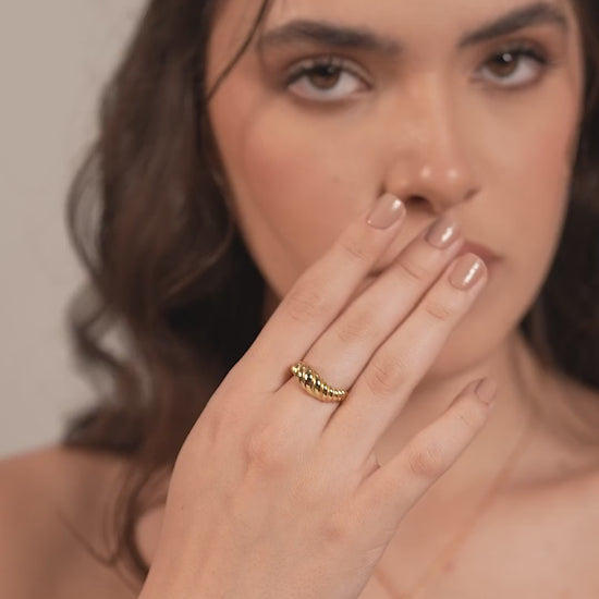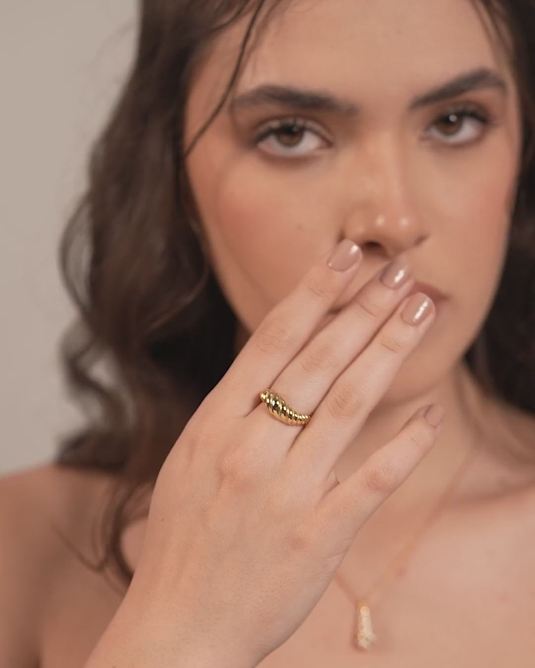 Made with 925 sterling silver and plated in gold tone. Set without diamonds for a sleek metallic look. Ideal for stacking or wearing solo. Tarnish-resistant and hypoallergenic.