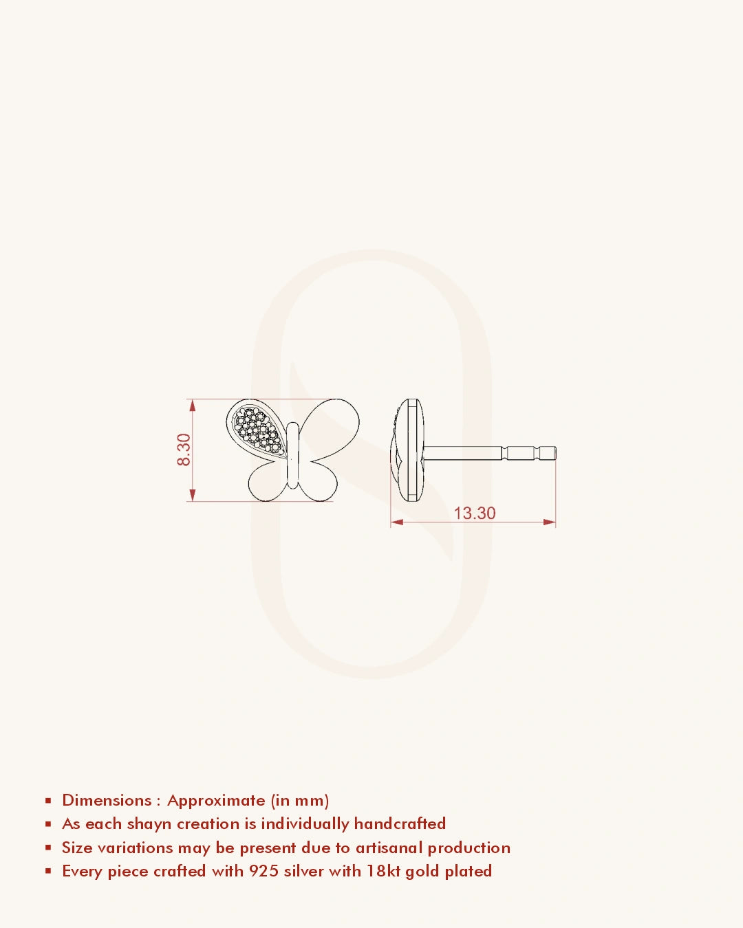 | Metal | 18KT Gold Vermeil (2.5 Microns Gold Layer on 925 Silver) |