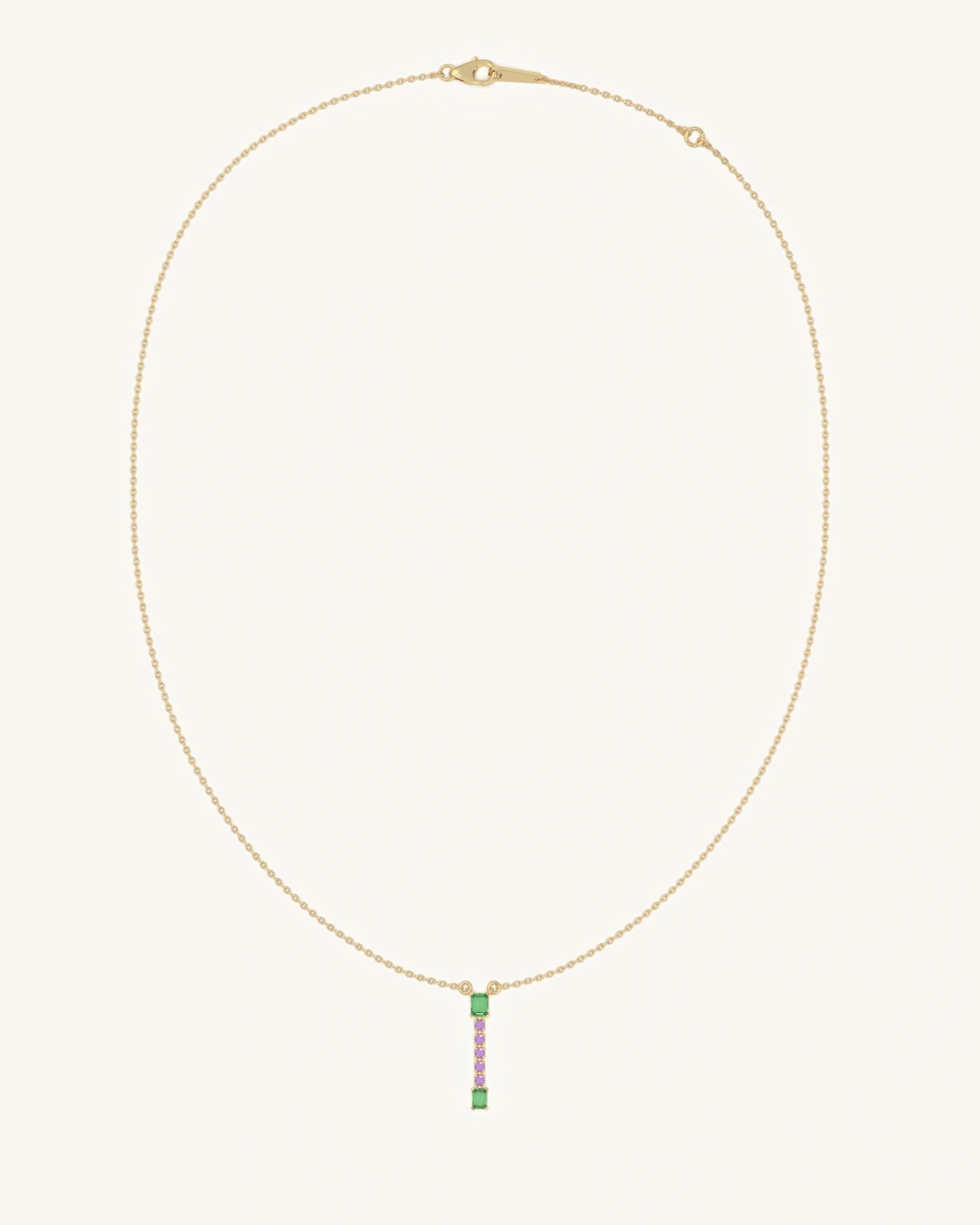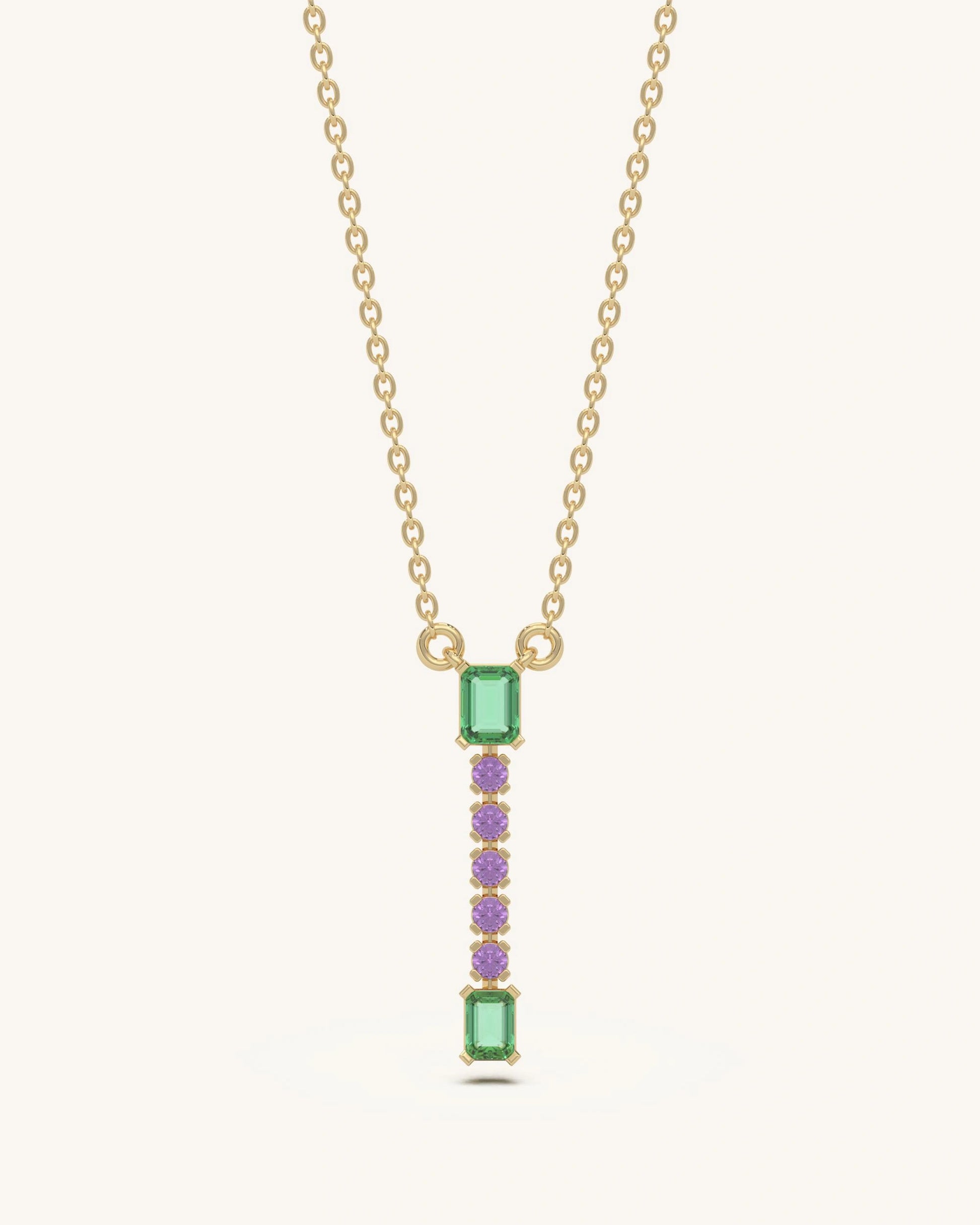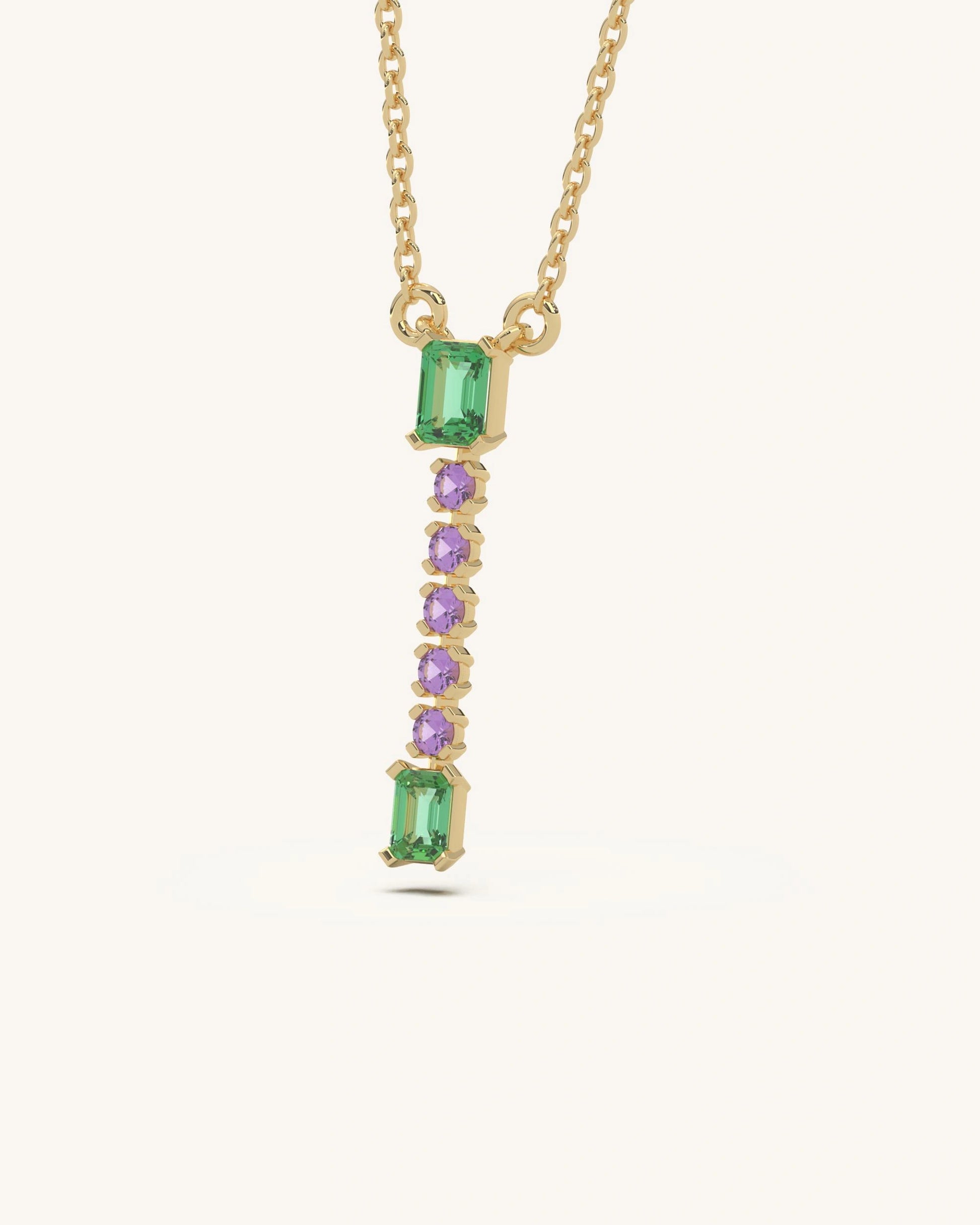 Crafted in 925 silver with green and pink stones. Finished in gold tone for a refined statement look.