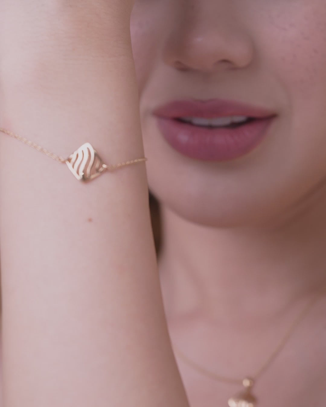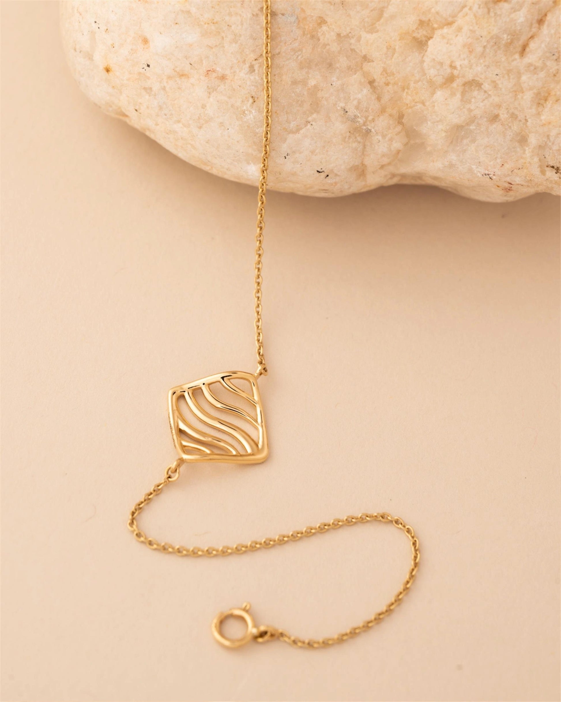 Crafted in 925 silver and finished in yellow gold. The bracelets airy structure combines geometric balance with fluid motion.