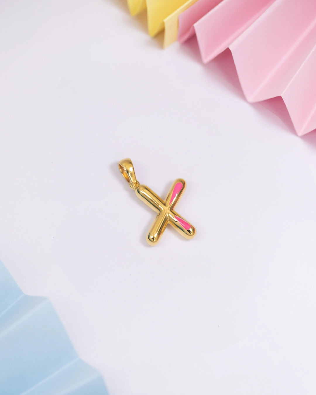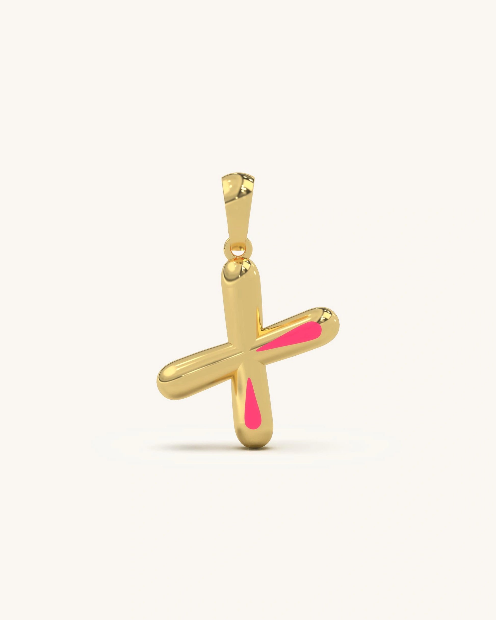 Made in 925 silver with a gold finish and moissanite shine. The bright pink detailing offers vibrant energy to this well-balanced design.